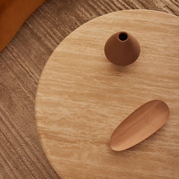 Anchor your dining areas with the brown tones of the Cosmos Timber Dining Table and Arrow Timber Bar Stools. Complete each look with subtle details like the Clementine Glazed Bowl, the Leo Lamp, and the Wilma Marble Tray—perfect for layering warm, natural textures that work to complement the Mocha Mousse hues beautifully.