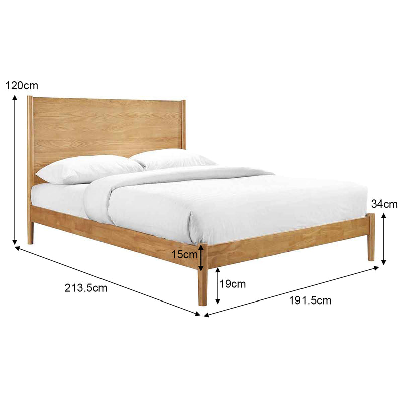 MDF headboard with Ash Veneer. FSC-certified solid Rubber wood legs, footboard and siderail.