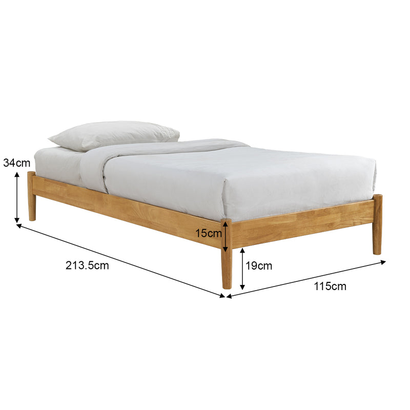Solid timber frame, low profile, tapered legs, available in various sizes.
