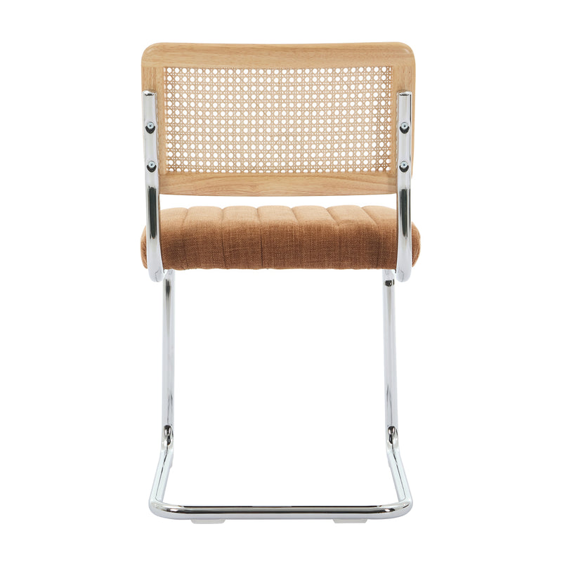 The Blake Rattan Fabric Dining Chair combines modern aesthetics and luxurious comfort to make a strong design statement in any dining space. Crafted from solid steel, the frame features a stunning cantilever structure that brings a unique focal point of visual interest to its design. The contrasting materials of the natural rattan backrest and soft fabric seat create a beautiful interplay of textures, whilst offering supreme support with plush foam padding. The tactile and visually appealing aesthetic of this chair will elevate your interiors, and last your home for years to come.