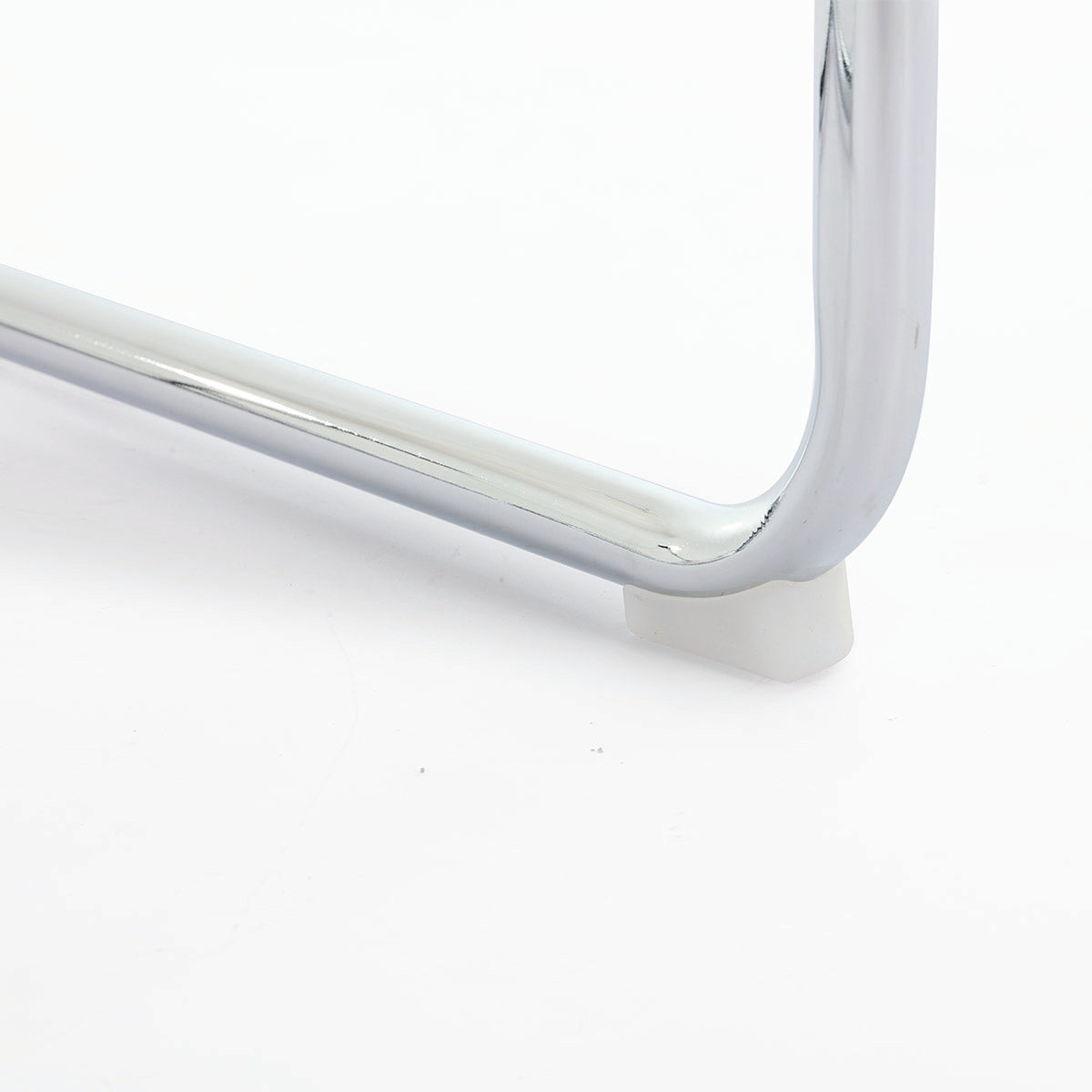 Solid steel frame, padded and upholstered seat, natural cane backrest.