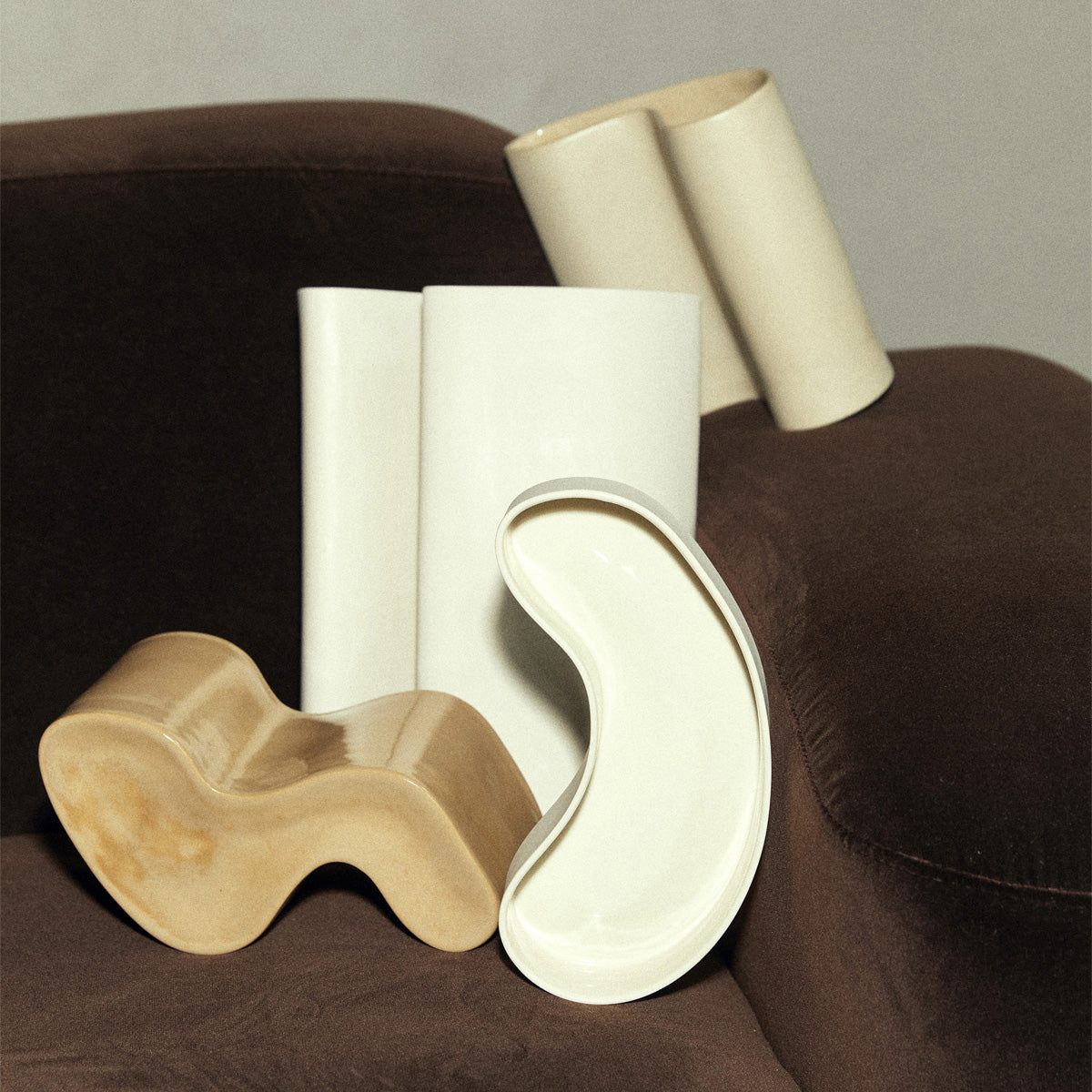 Designed by Milly Dent & Sarah Ellison for ELLISON STUDIOS., set of 4, hand cast & fired from Australian clay, can be used as vessels or flipped to be a sculptural objects, also available individually.
