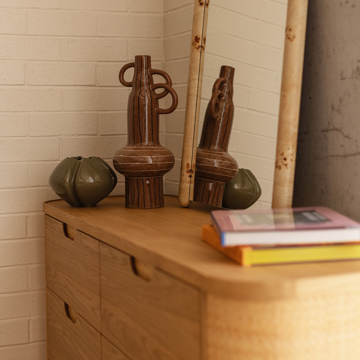 For general maintenance, wipe down the timber with a damp cloth, wiping in the direction of the natural grain, and then dry with a soft clean cloth. To clean the rattan, brush regularly with a dry, medium-bristled brush to remove dirt and dusty build up between the reed strands. For a thorough clean, spot clean using a mild detergent. Take care not to apply too much water as this may cause the rattan to lose shape. Always use heat protecting mats for hot items. Avoid placing your furniture in direct sunlight or heaters for an extended period of time