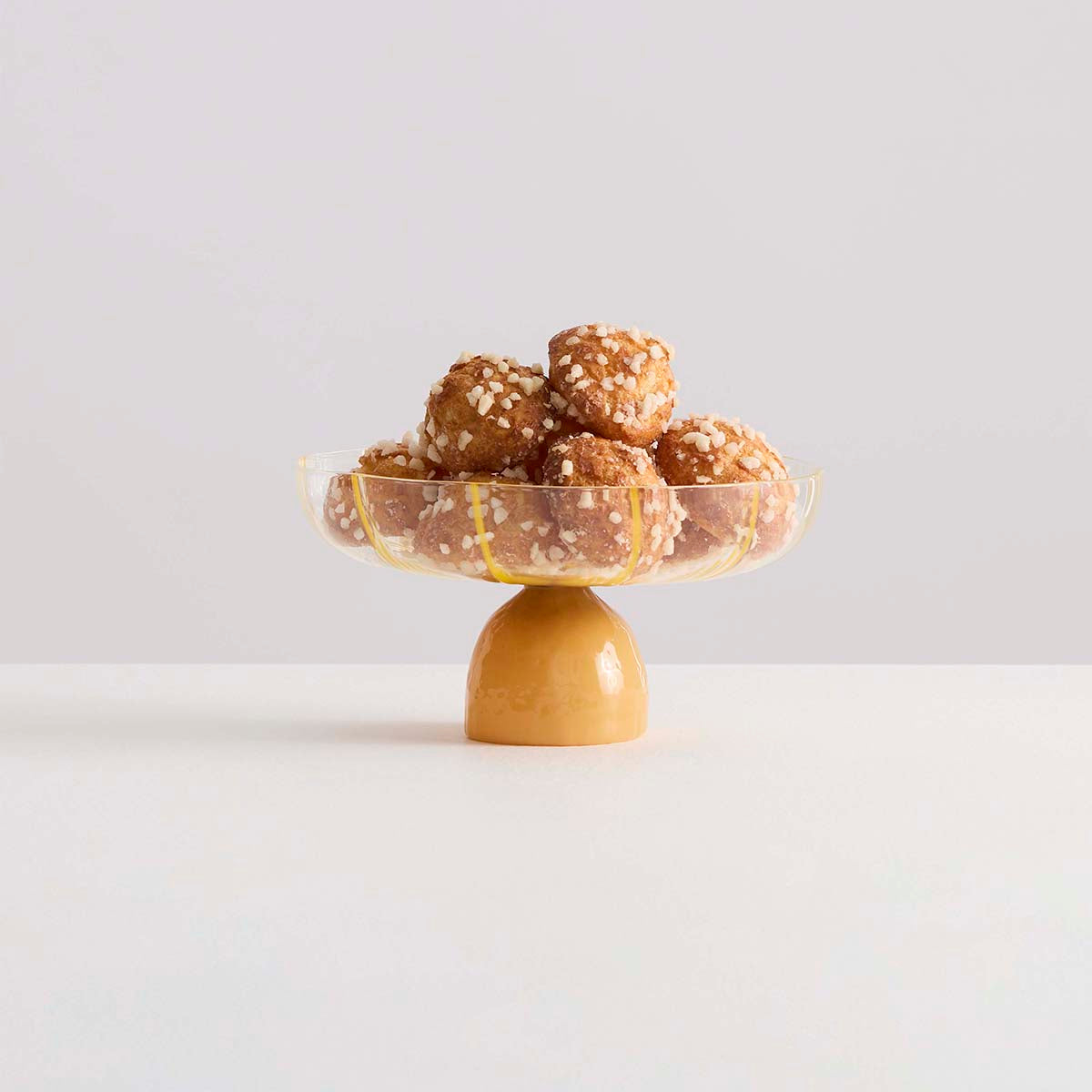 Hand blown from 100% Borosilicate glass, clear & yellow colourway, slight variances in shape, size and colour may occur.