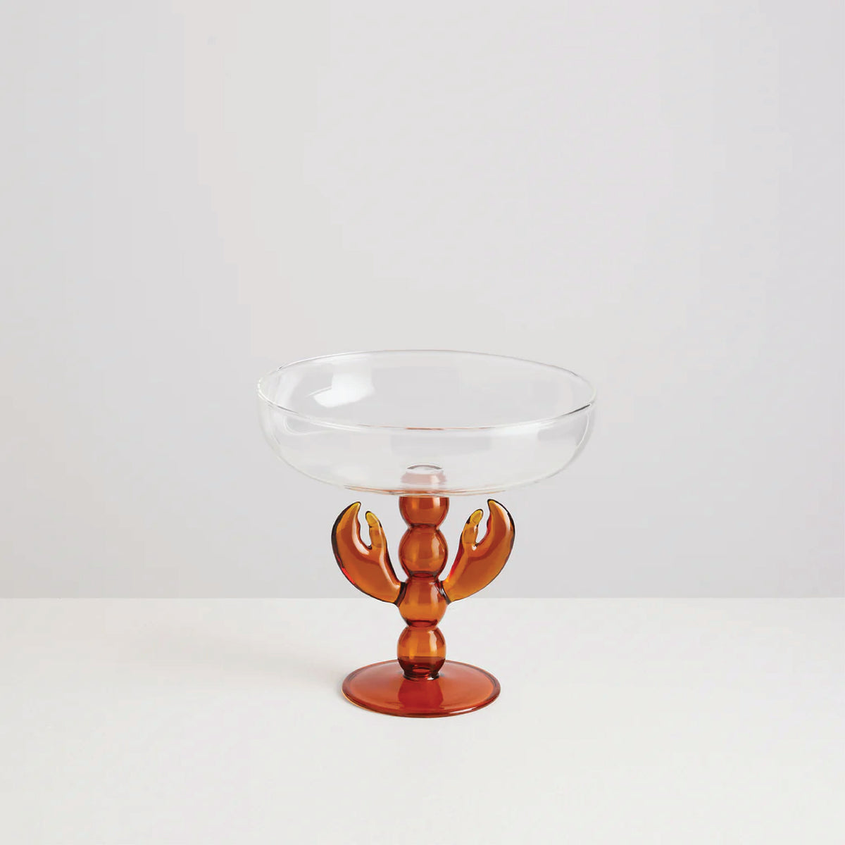 Our Volute Platter has dressed up as a lobster to bring a playful Mediterranean touch to your table. Watch closely, he might just try to pinch the fruits proudly displayed on his head! A striking centrepiece and serving dish in one, this glass footed platter is made to delight.
