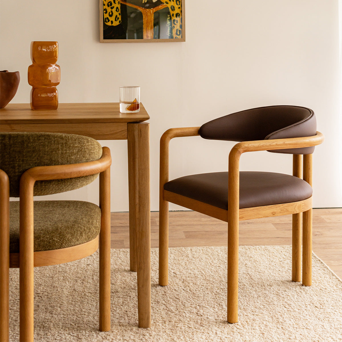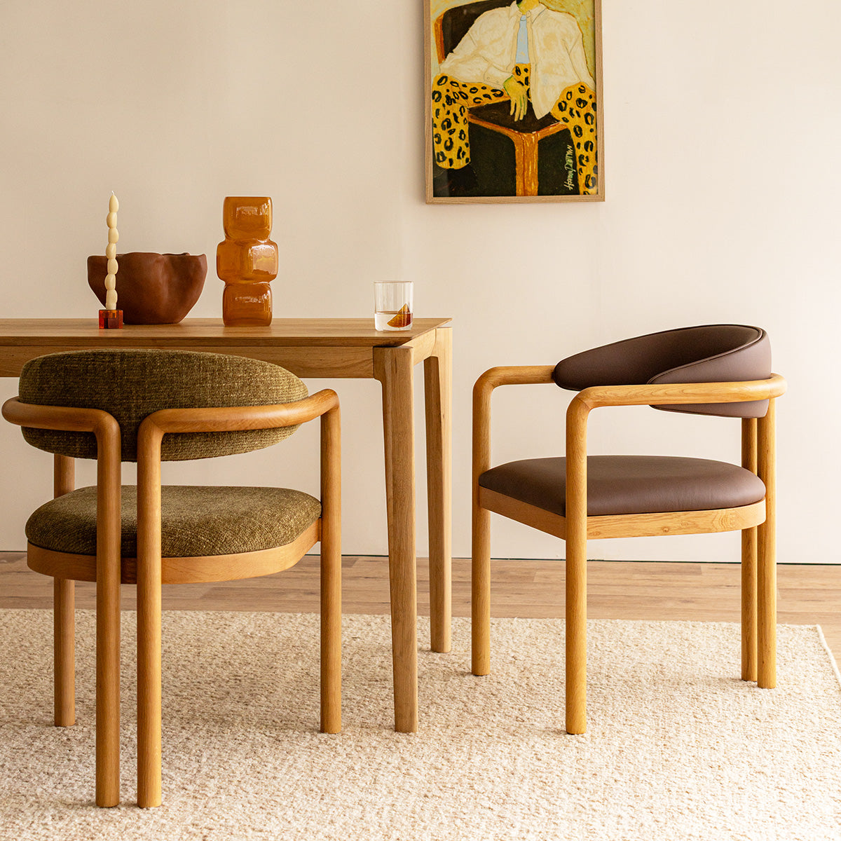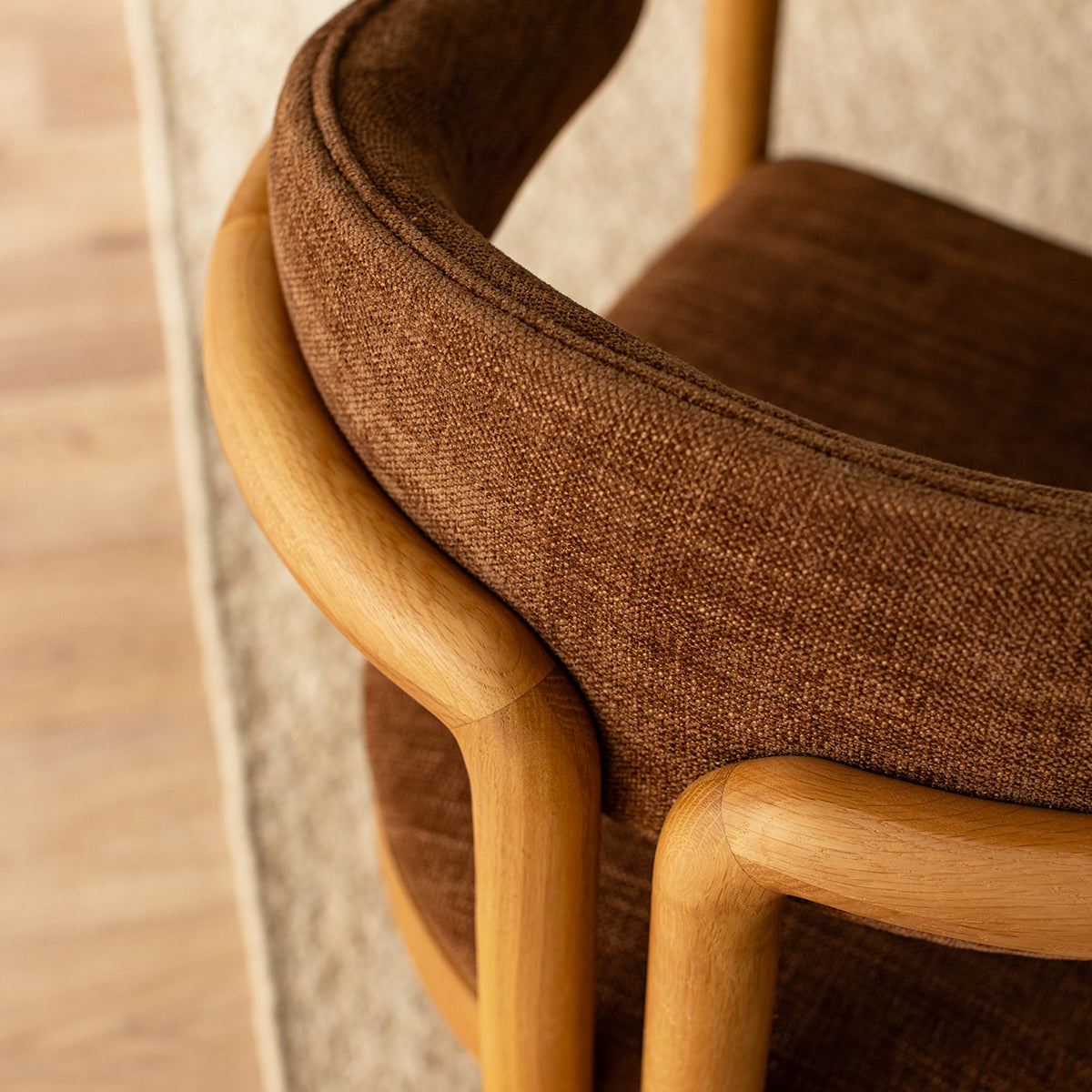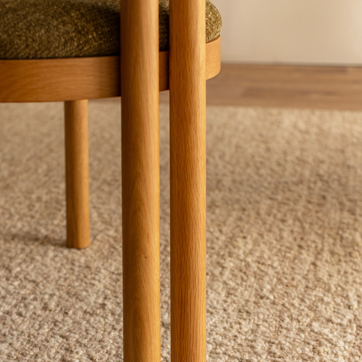 The Palermo Dining Chair boasts a timeless design that nods to Scandinavian design leanings. Crafted with a solid american oak frame, its natural grain and refined finish bring warmth and sophistication to any dining space. The curved form and plush fabric upholstery provide comfort while maintaining a sleek, understated aesthetic. With its simple yet impactful design, Palermo will complement both your everyday dining and dinner party occasions with an elevated sense of style.