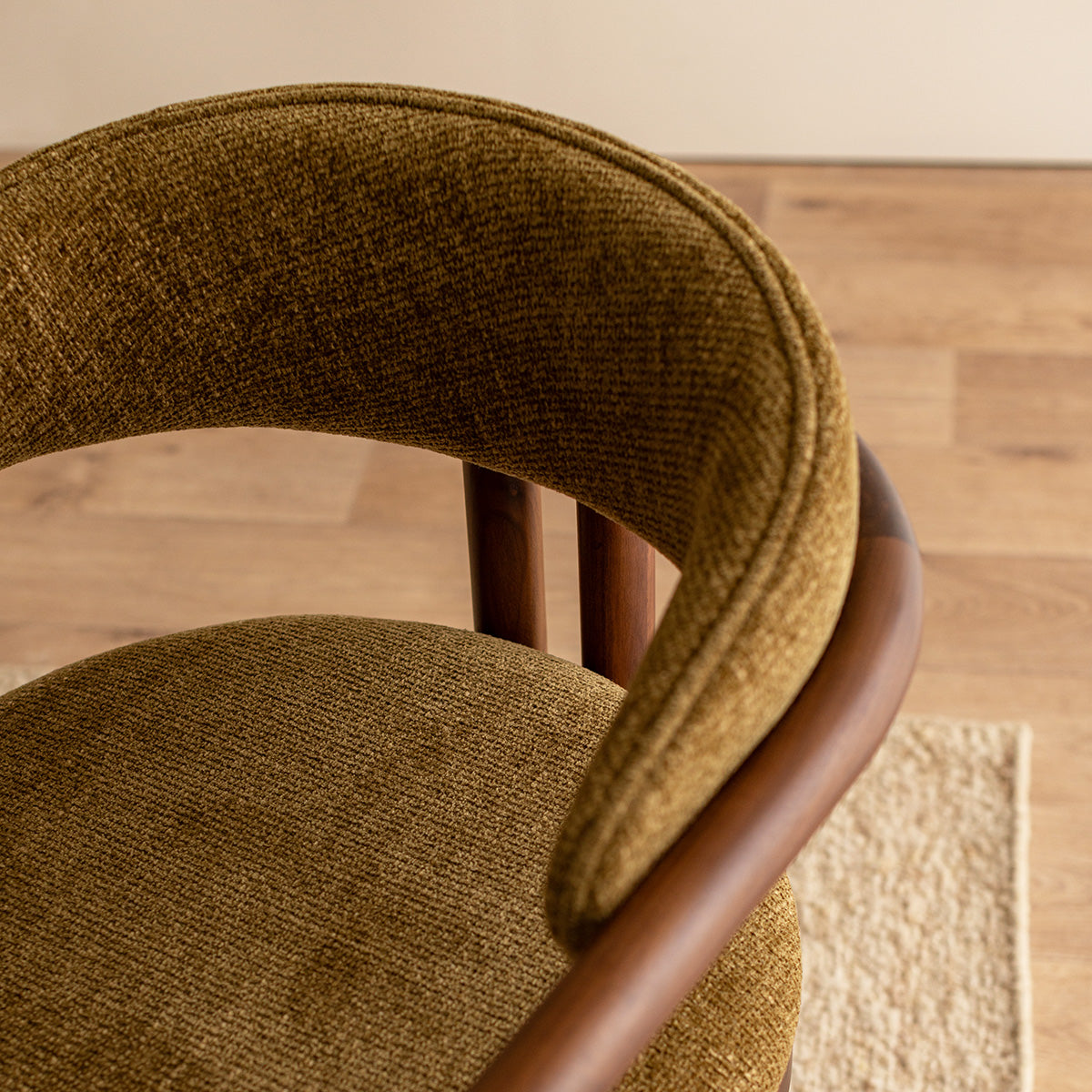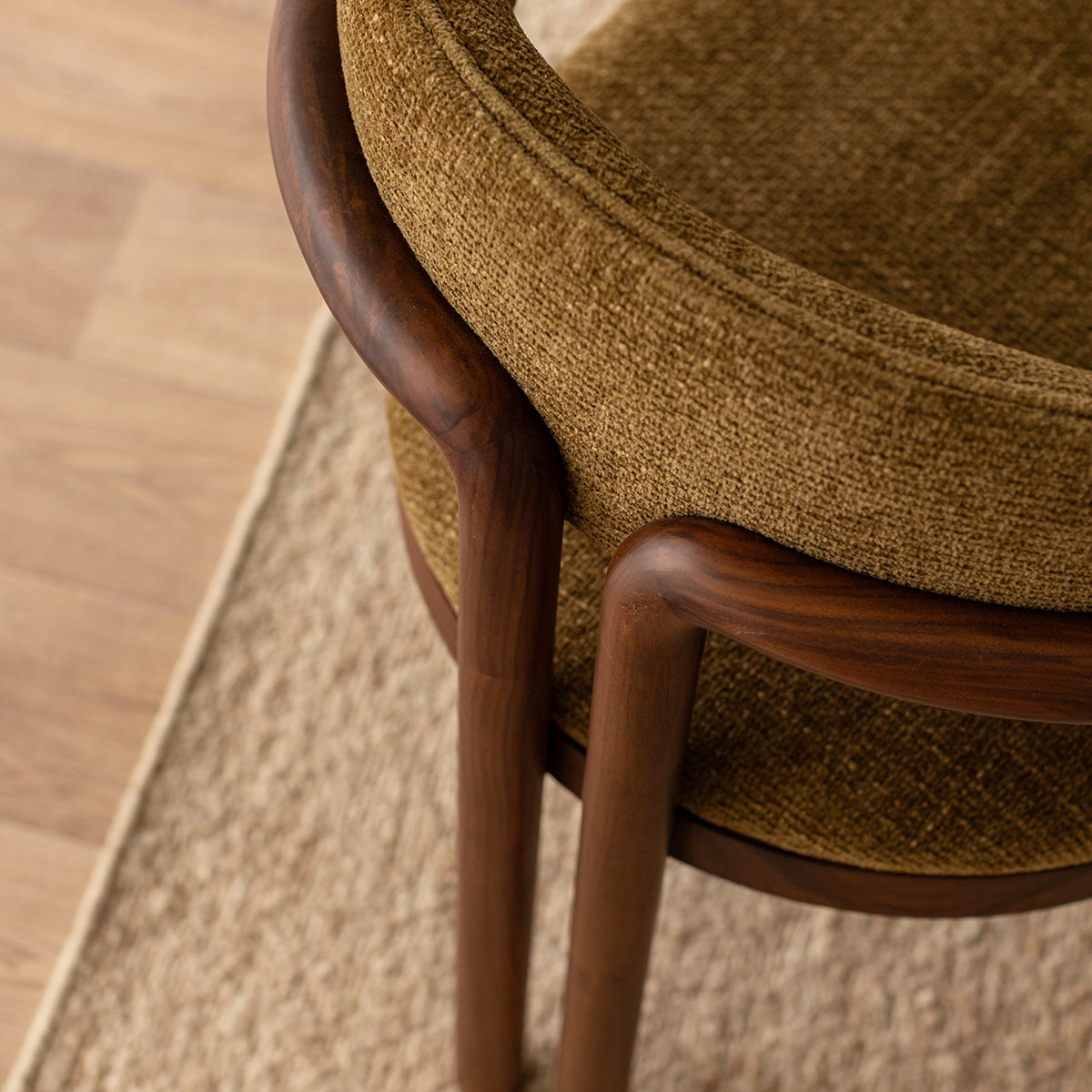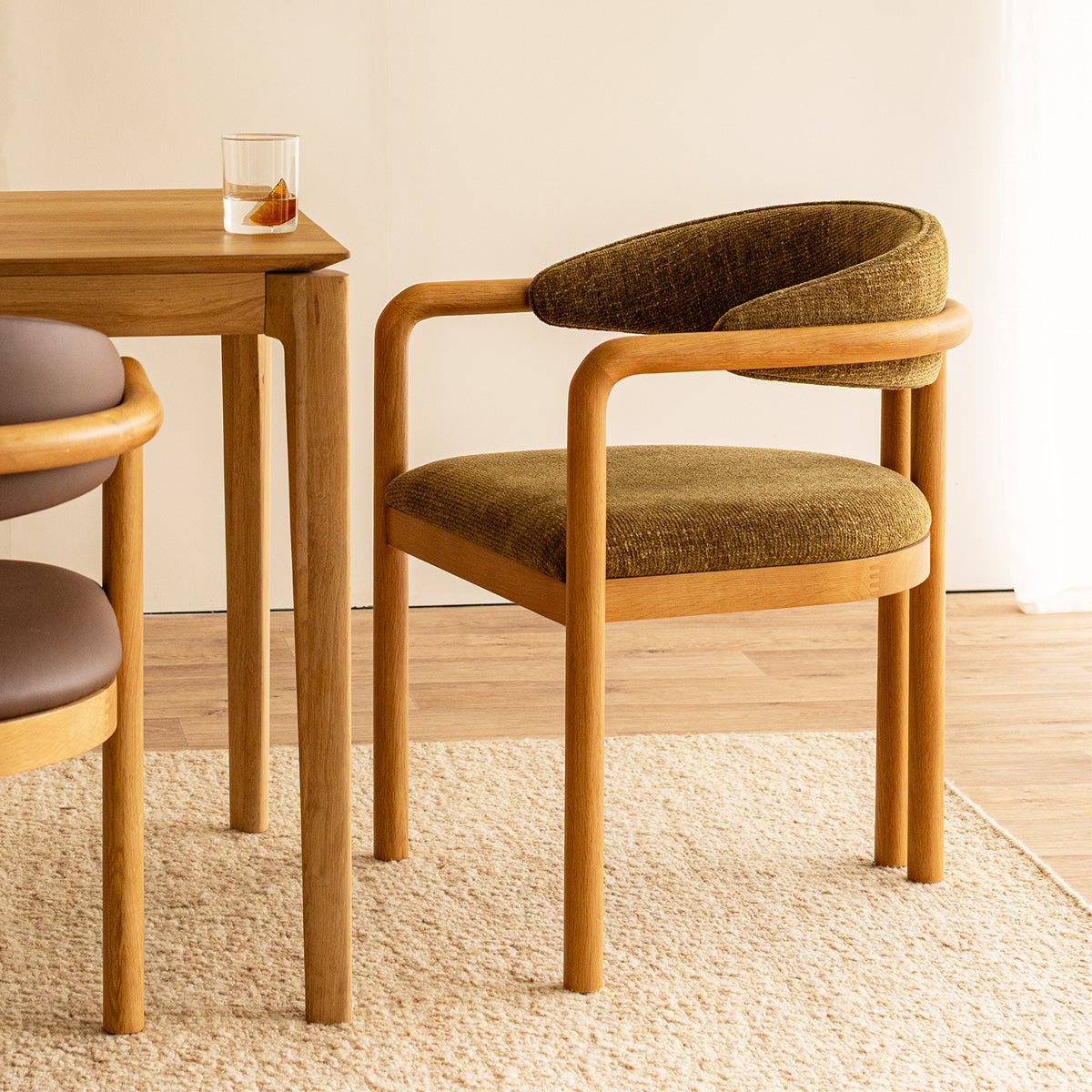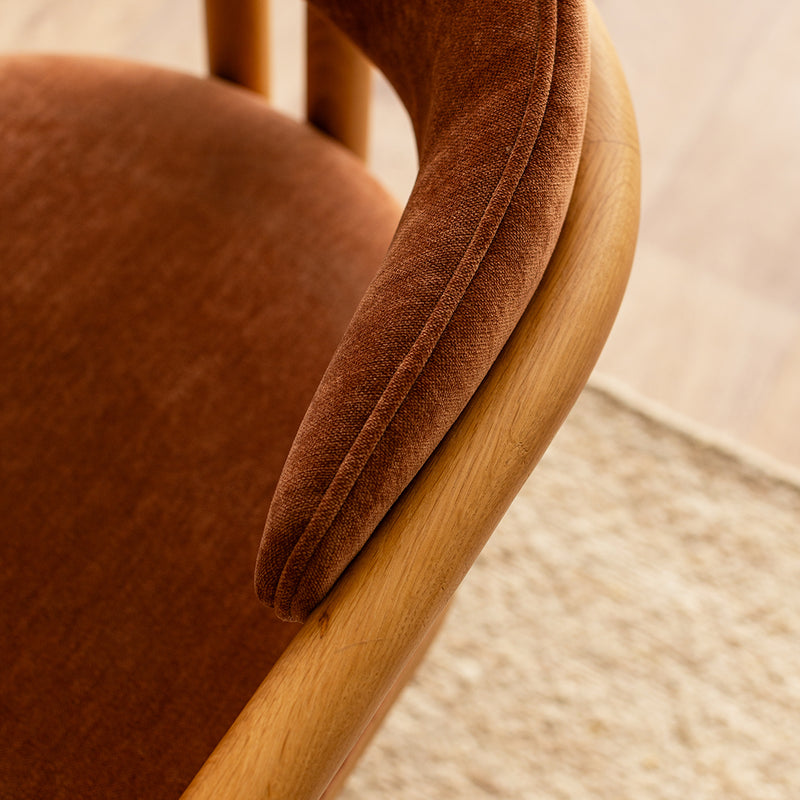 The Palermo Dining Chair boasts a timeless design that nods to Scandinavian design leanings. Crafted with a solid american oak frame, its natural grain and refined finish bring warmth and sophistication to any dining space. The curved form and plush fabric upholstery provide comfort while maintaining a sleek, understated aesthetic. With its simple yet impactful design, Palermo will complement both your everyday dining and dinner party occasions with an elevated sense of style.