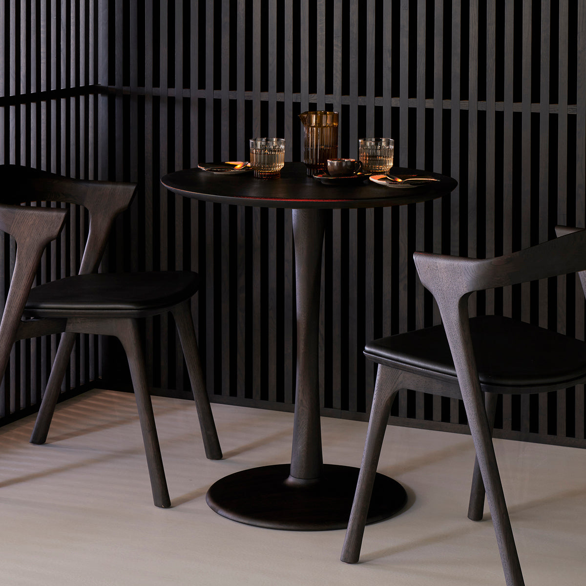 Airy with subtle complexities, the Torsion solid oak black dining table incorporates advanced woodworking techniques to create a light table top with a torsade base of sculptural elegance.