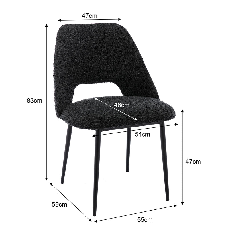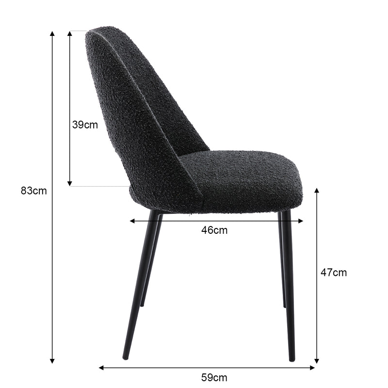With incredible contemporary charm, the Belmont Boucle Dining Chair is a simple chair that boasts a tactile design with a gracefully curved backrest. The sleek powder-coated steel legs add a sophisticated touch, whilst the padded seat and backrest offers luxurious comfort during meals and long conversations around the table. The timeless hues of this dining chair effortlessly blend with various decor styles and colour schemes, making it a versatile and stylish addition to any dining space.