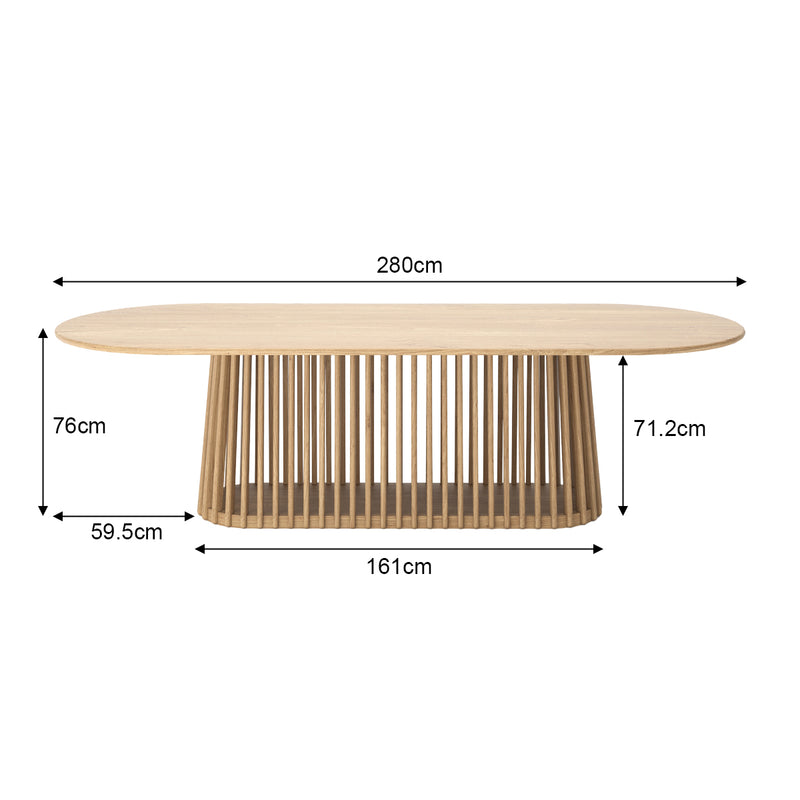 The Casablanca Oval Dining Table is a statement piece that will complement any contemporary dining space. Casablanca details a bold slatted base that is balanced by a oval shaped tabletop that highlights its unique wood grain patterns. Equally as practical as it is stylish, the Casablanca will be a stunning yet incredibly versatile addition to your home.