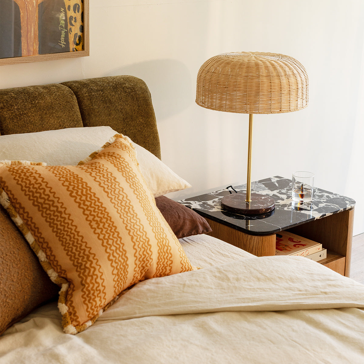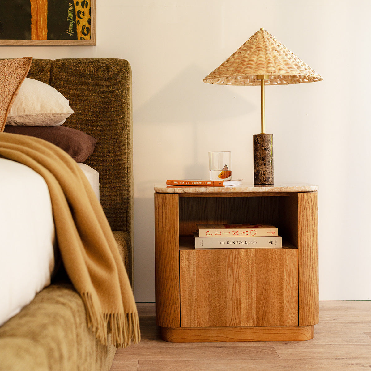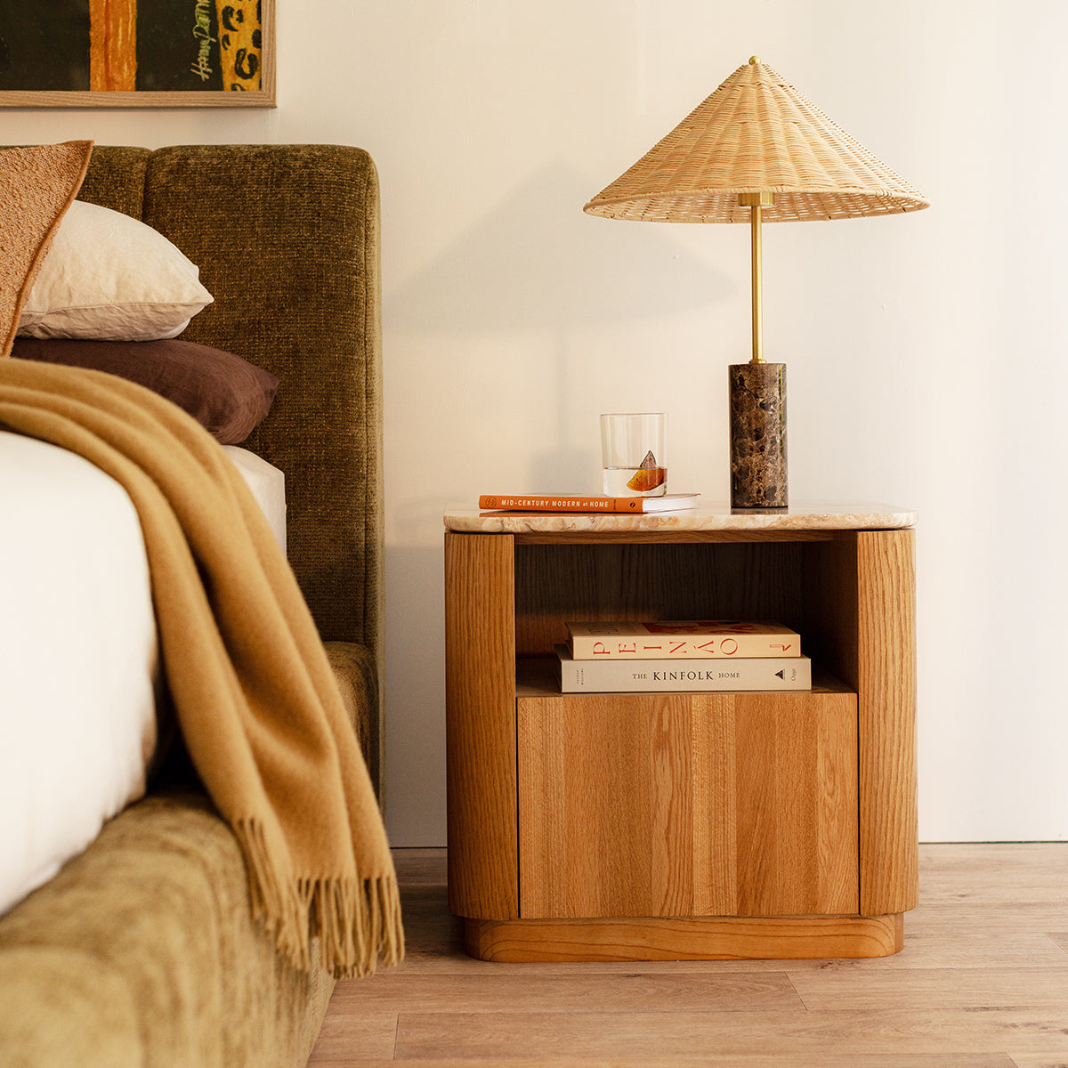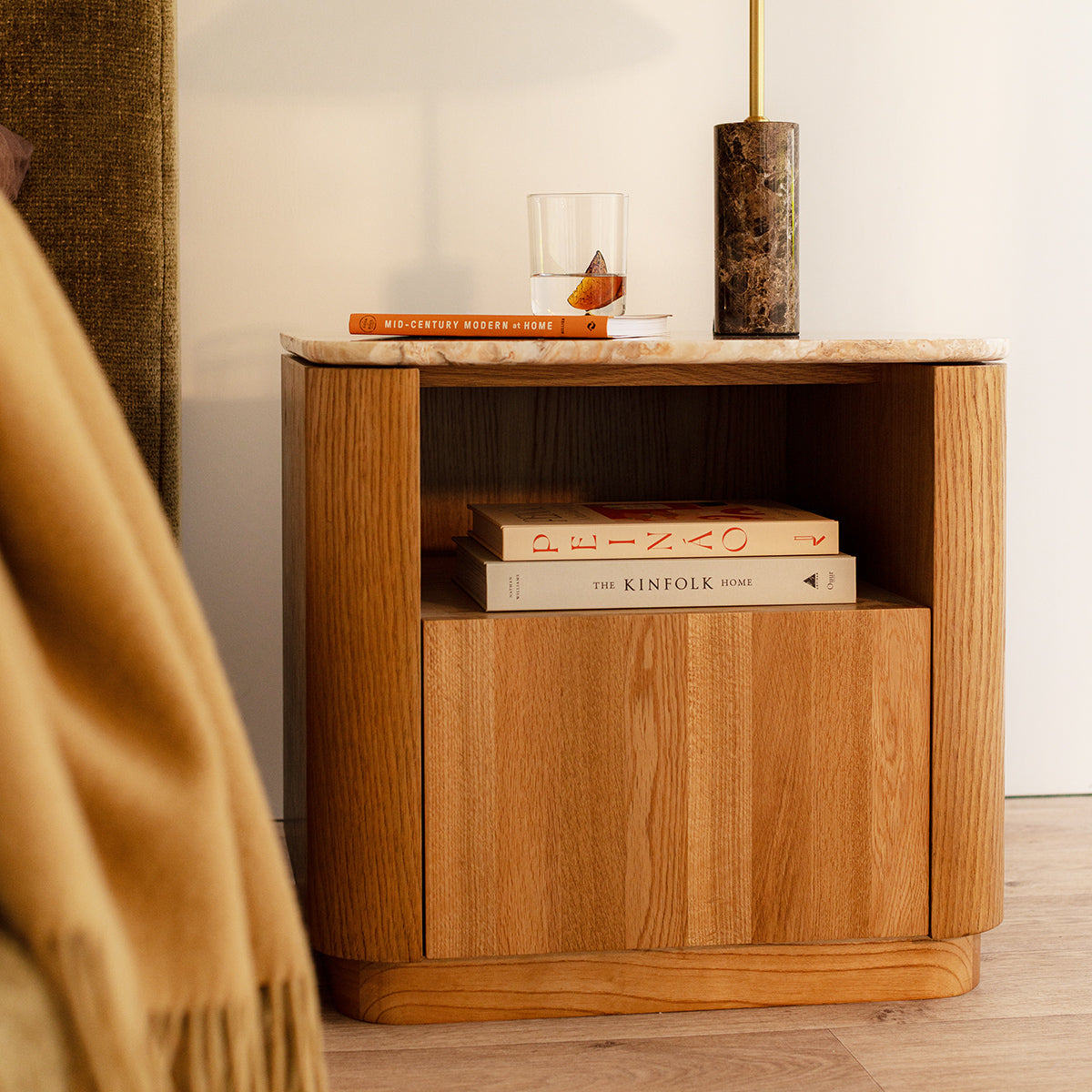 Elegant and enduring, the Florentina Natural Stone Bedside Table celebrates the beauty of natural materials through a refined, contemporary design. The natural stone top showcases soft tonal variations and organic texture, perfectly complemented by a warm oak or walnut veneer base with gently rounded edges