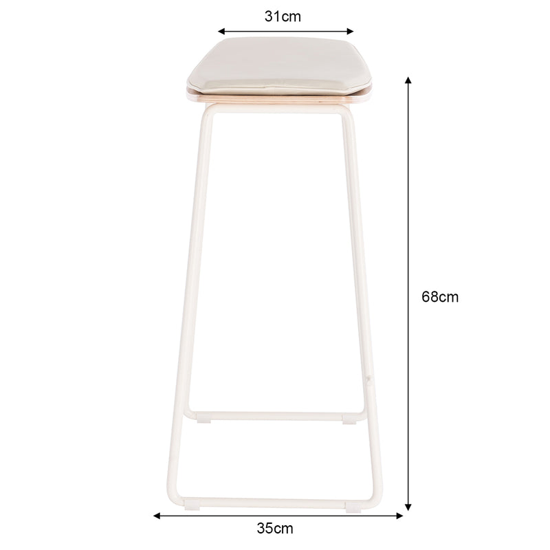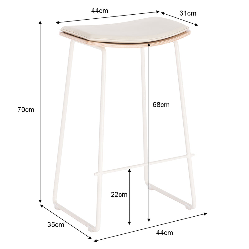 Minimalist industrial style, leather seat pad, comfortable curved plywood seat, steel foot bar, floor protection glides, available in a range of timber and colour combinations.