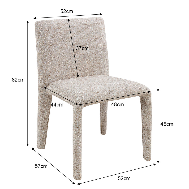 The Sofia Dining Chair is a contemporary statement piece with an elevated aesthetic and tactile finish. Covered in a textured fabric upholstery from top to toe, its plush cushioned design brings comfort and ease to any dining space. Versatile and stunning, the Sofia will work with almost any dining table, whilst effortlessly adding interest to your space.