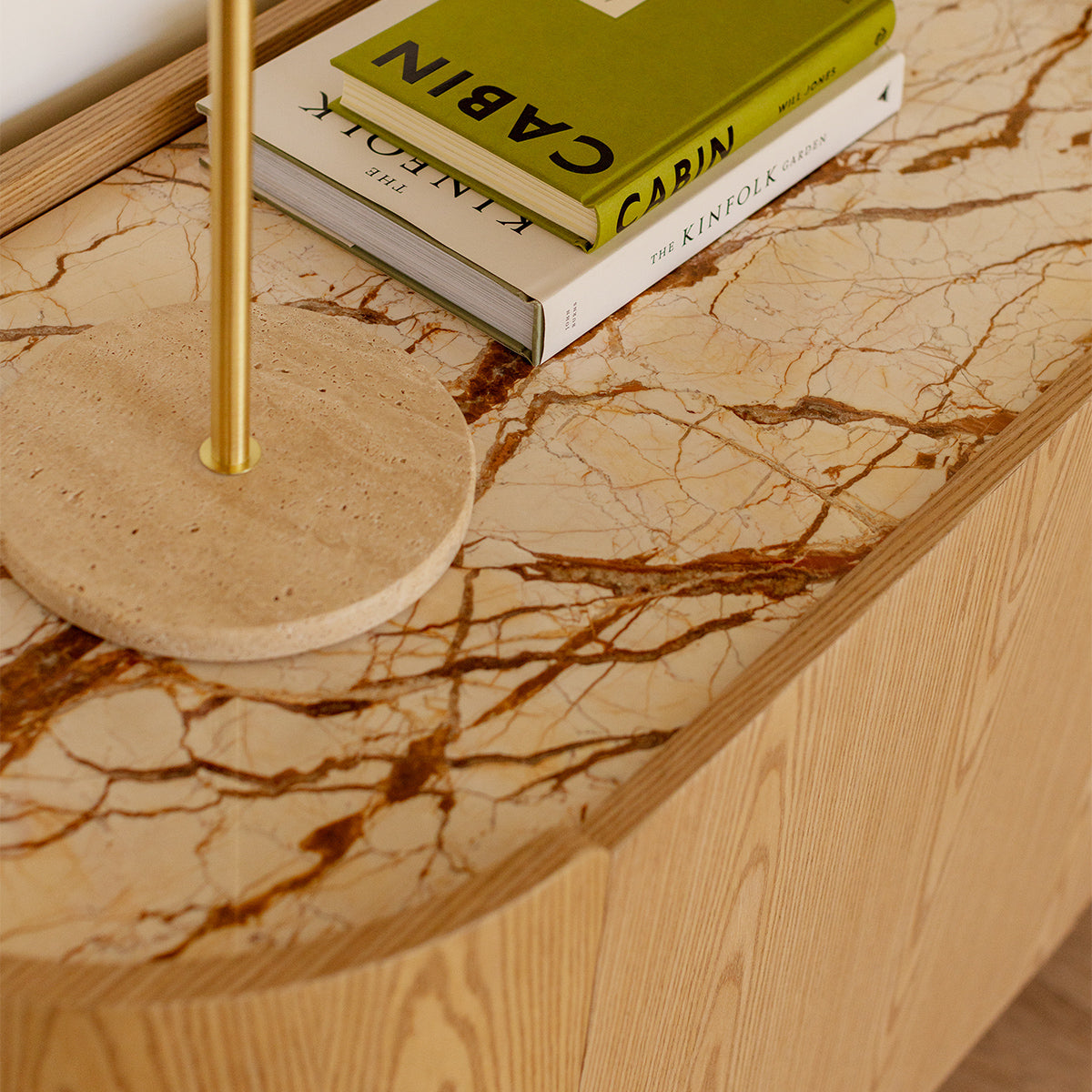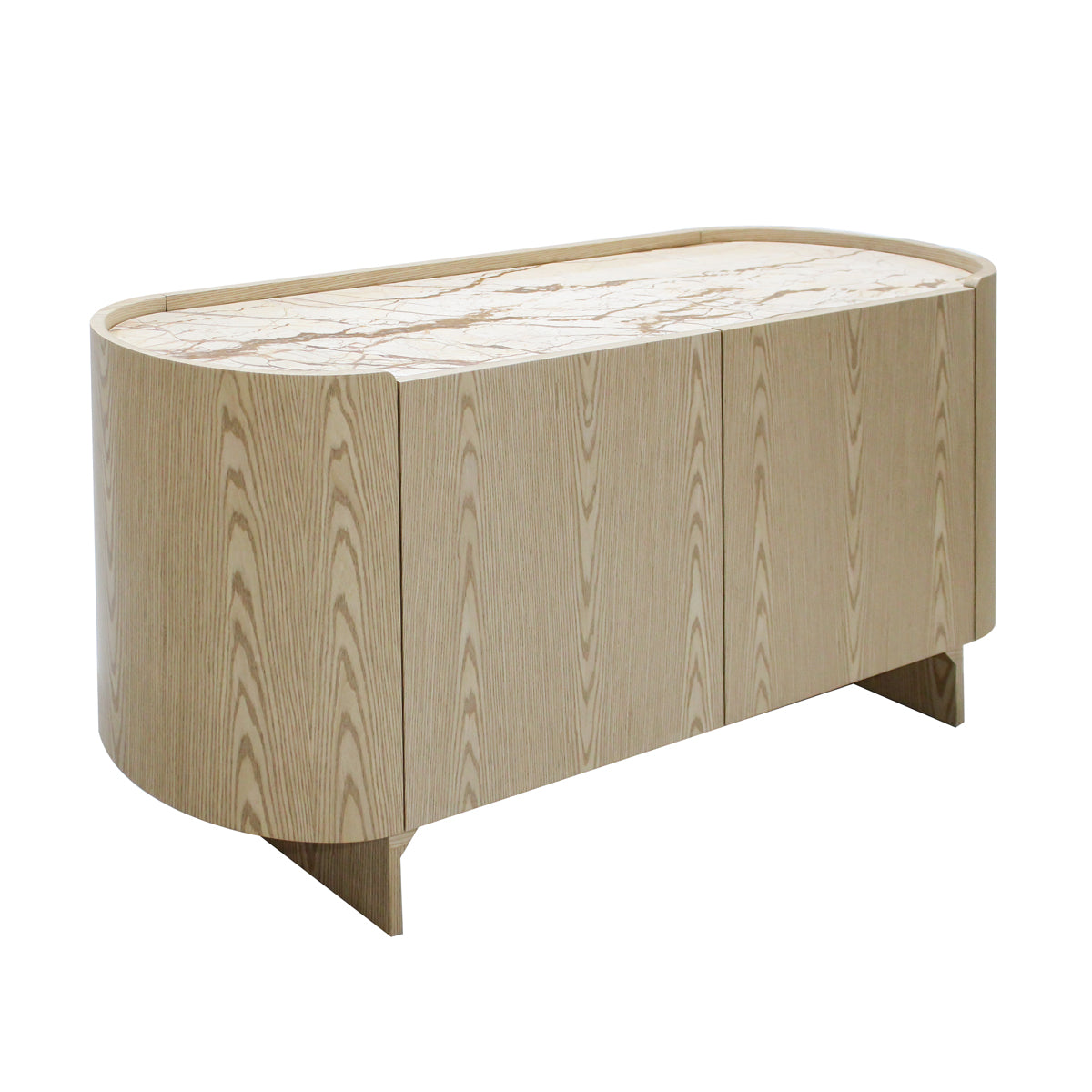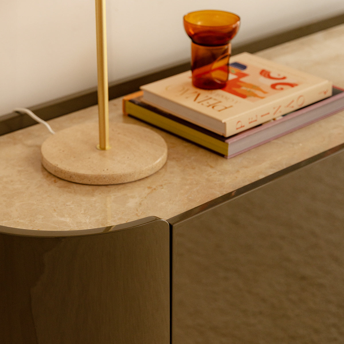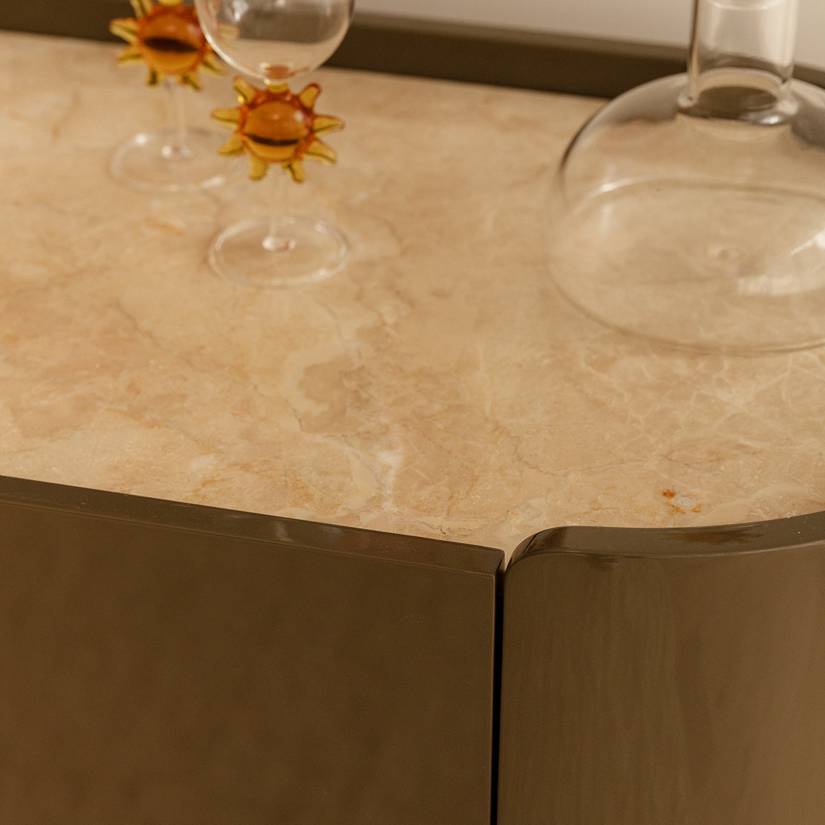 The Sorrento Marble Sideboard is a true celebration of contemporary elegance, crafted to bring refined luxury into the heart of your home. With its soft, sculptural silhouette and premium stone top, this piece blends modern craftsmanship with timeless materiality, offering both visual impact and everyday practicality.