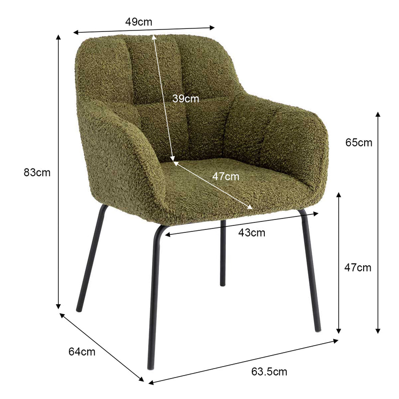 The Stella Fur Dining Chair features a retro-inspired aesthetic designed with luxurious comfort in mind. Featuring a visually unique padded form, the Stella is crafted with solid steel legs that provide a sturdy foundation for its deep, bucket-style seat. Upholstered in a stunning teddy upholstery, the seat also features supportive armrests that make Stella both incredibly comfortable and versatile to use at the dining table or as an accent chair in any living space.