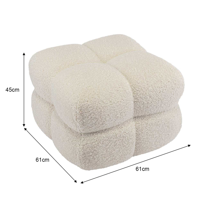 Teddy fabric upholstery, square shape with curvy edges, available in various colourways.