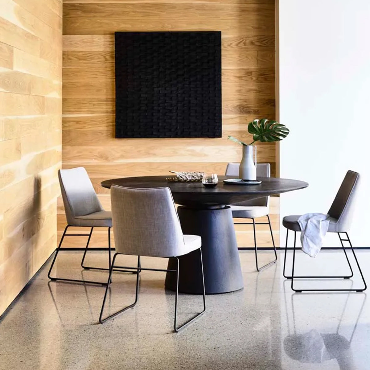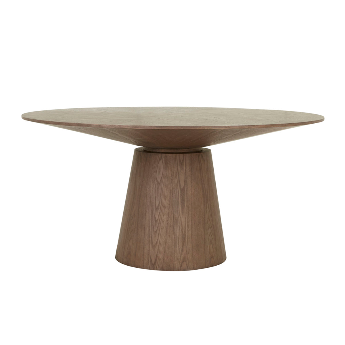 The Classique Round Dining Table redefines everyday dining with sculptural elegance and refined craftsmanship. Featuring a statement conical base and gently tapered tabletop, this piece showcases the beauty of natural timber grain while offering a balanced, grounded silhouette. Its circular form encourages connection, making it perfect for intimate gatherings and open-plan living spaces.