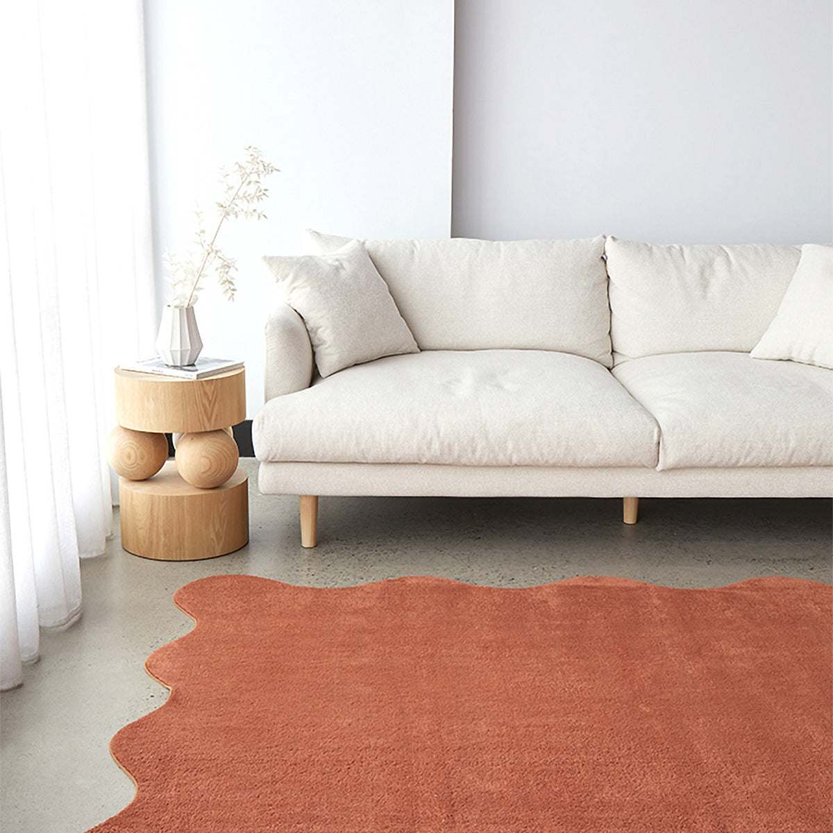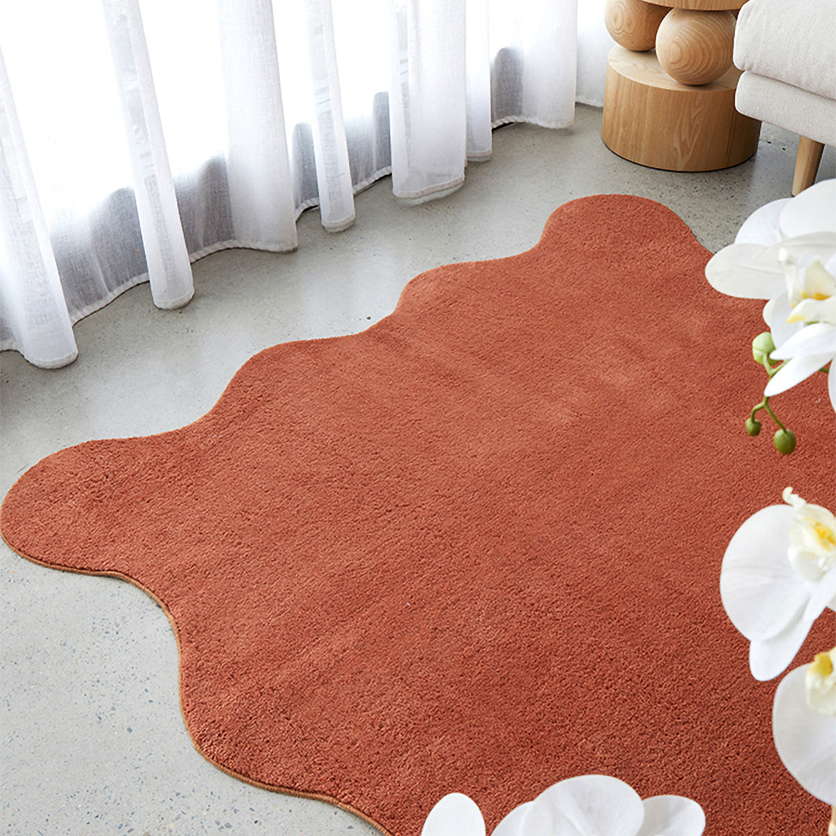 Playful yet refined, the Evelyn Rug brings organic movement and contemporary softness to any space. Its sculptural, wavy-edge design adds visual interest, while the warm tones grounds your interior in effortless calm. Crafted from a plush, textural pile, the Evelyn offers luxurious comfort underfoot and a modern, design-forward aesthetic.