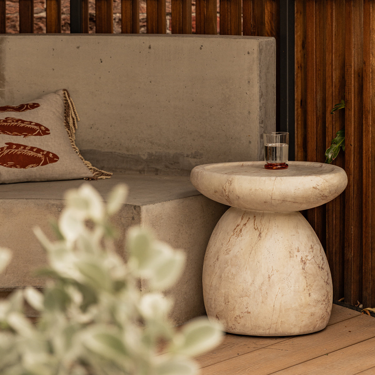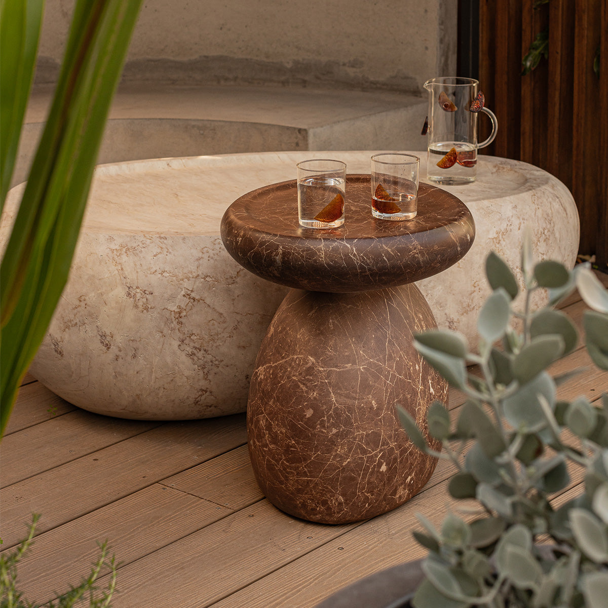 Inspired by organic forms and sculptural simplicity, the Pablo Pebble Side Table offers a grounded yet elevated presence for any setting. Made from durable concrete and finished in either marble or travertine, its soft, rounded profile mimics the natural beauty of pebble stones. The perfectly balanced proportions and tactile surface make Pablo a versatile accent, equally suited as a side table, pedestal, or standalone statement. Designed for indoor and covered outdoor use, it brings timeless texture and subtle elegance to every corner of your home.