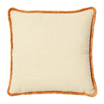 60% linen, 40% cotton cover with brown fringe trim.