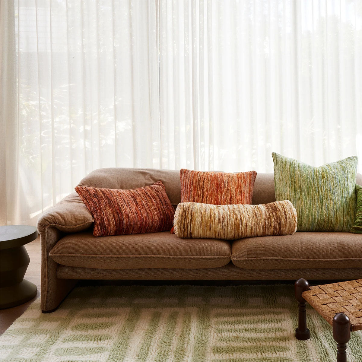 Handwoven marle wool cover (81% wool, 13% cotton, 6% polyester).