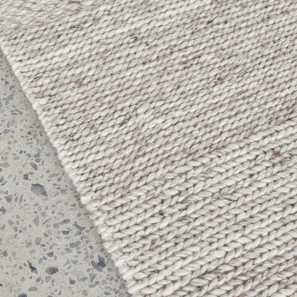 Soft underfoot, 49% wool, 22% cotton, 17% polyester, 12% viscose, 10mm pile, handwoven, made in India, use of an anti-slip pad underneath is recommended.