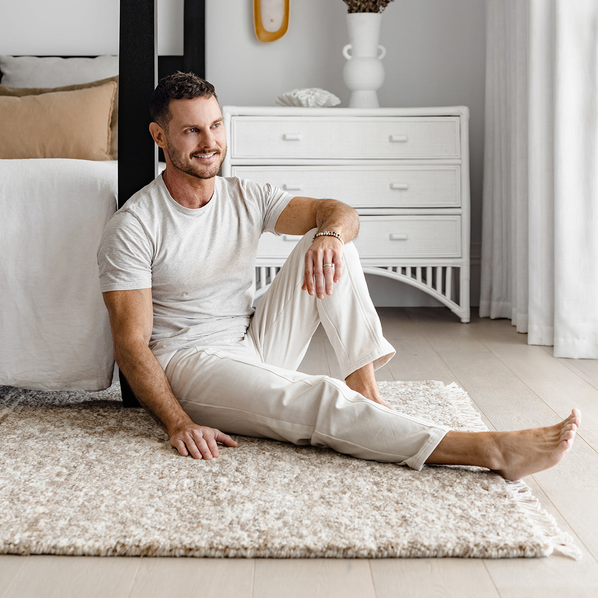 Soft 15mm pile, hand-knotted, 100% wool, delicate cotton fringe, made in India, use of an anti-slip pad underneath is recommended.
