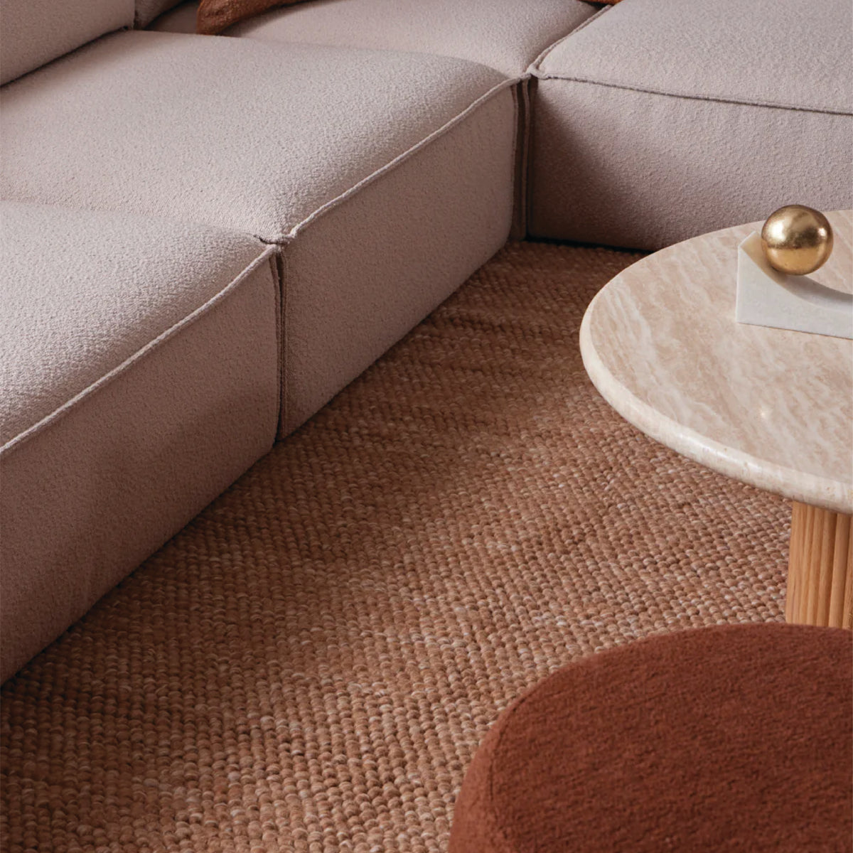 The Marlborough features a distinctive 17-18mm heavy loop pile crafted from premium New Zealand wool with a durable organic cotton canvas backing. This handwoven washable rug combines textural interest with practical functionality, perfect for adding warmth and dimension to any living space.Our innovative construction creates a secure, durable rug that maintains its integrity through multiple washing cycles. The specialized weaving technique delivers exceptional density, ensuring lasting performance and minimal shedding. Available in Natural and Brown colourways that effortlessly complement various interior styles. Each rug is OEKO-TEX® STANDARD 100 certified, guaranteeing non-toxic materials for your home.