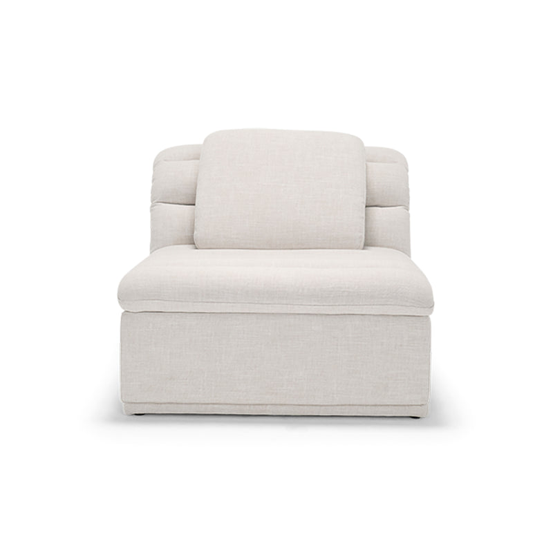 Designed by Sarah Ellison for ELLISON STUDIOS., armless modular piece, comes with 1 scatter cushion, engineered wood frame, reinforced joinery, cushion filled with fibre layer, available in various finishes.