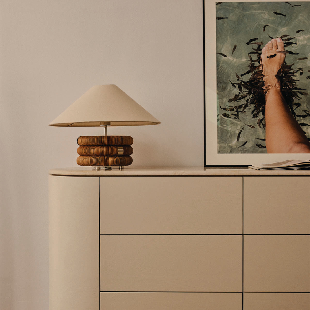 Linen, Metal, and Rattan