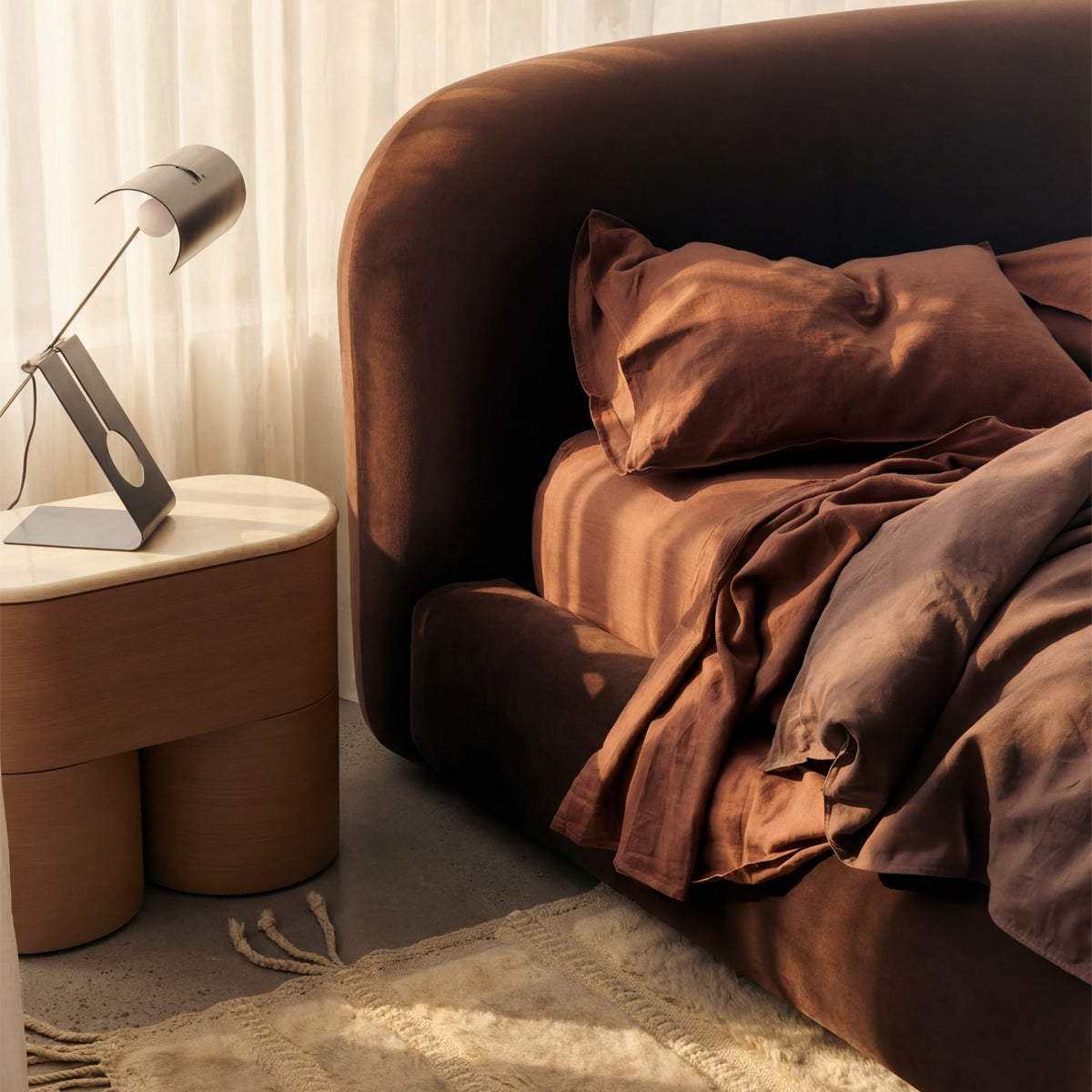Featuring a soft curvaceous form, Lull is a contemporary upholstered low line bed frame. Inspired by the bohemian spirit of the 70s surf aesthetic, her relaxed rounded frame showcases cloud-like form. Lull is the moment of calm between swells. ELLISON STUDIOS. is a leading Australian brand with pieces inspired by 70s design and laid-back living, available exclusively at Life Interiors.