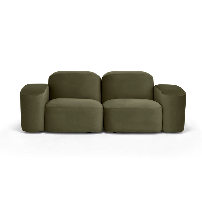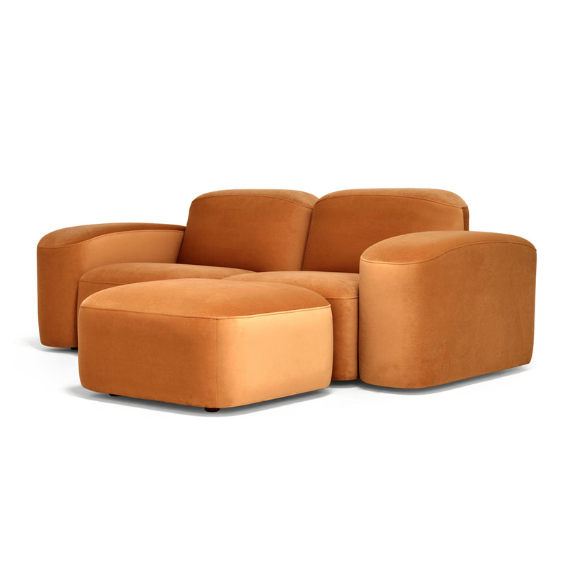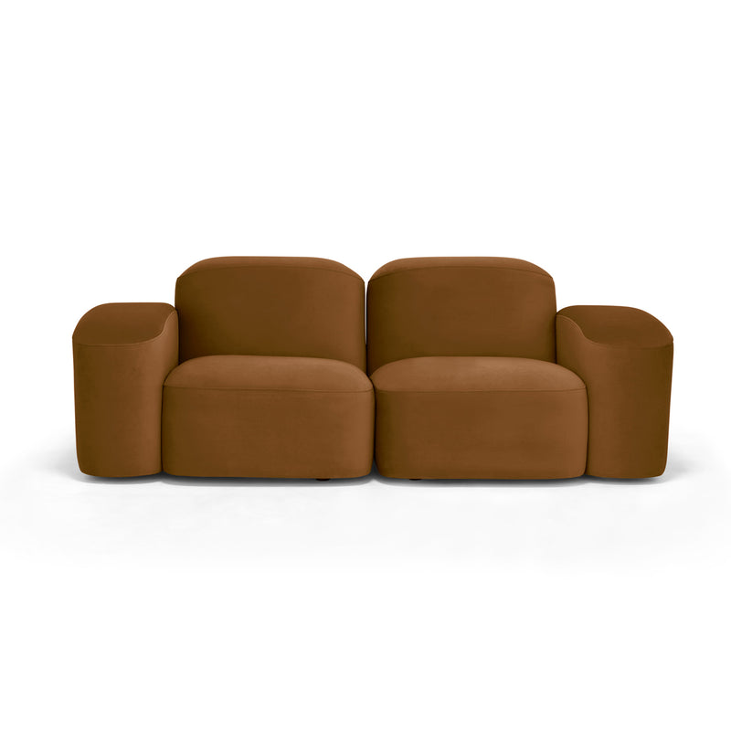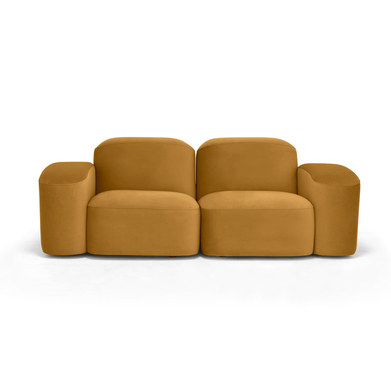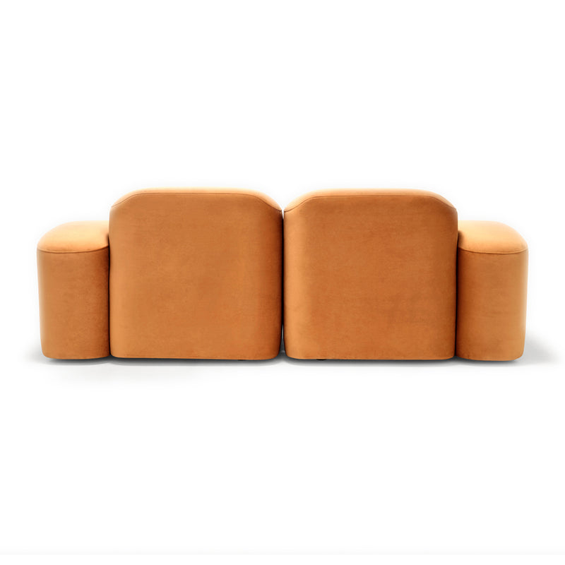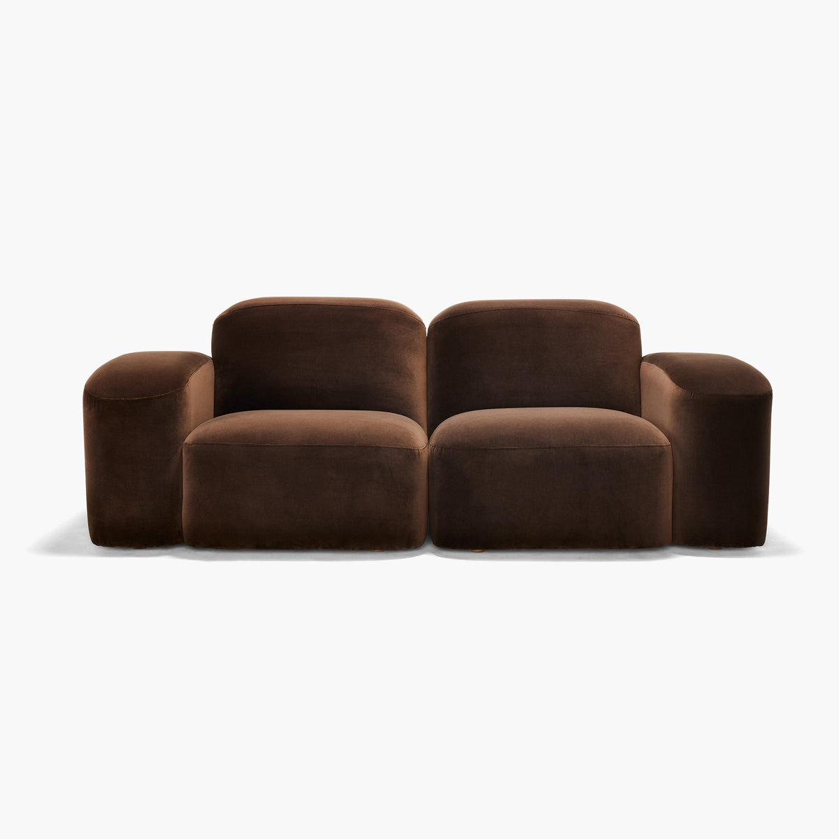 Designed by Sarah Ellison for ELLISON STUDIOS., 2 seater, seat and cushions are made with high-resiliency foams and high-gauge sinuous springs, available in various colourways.