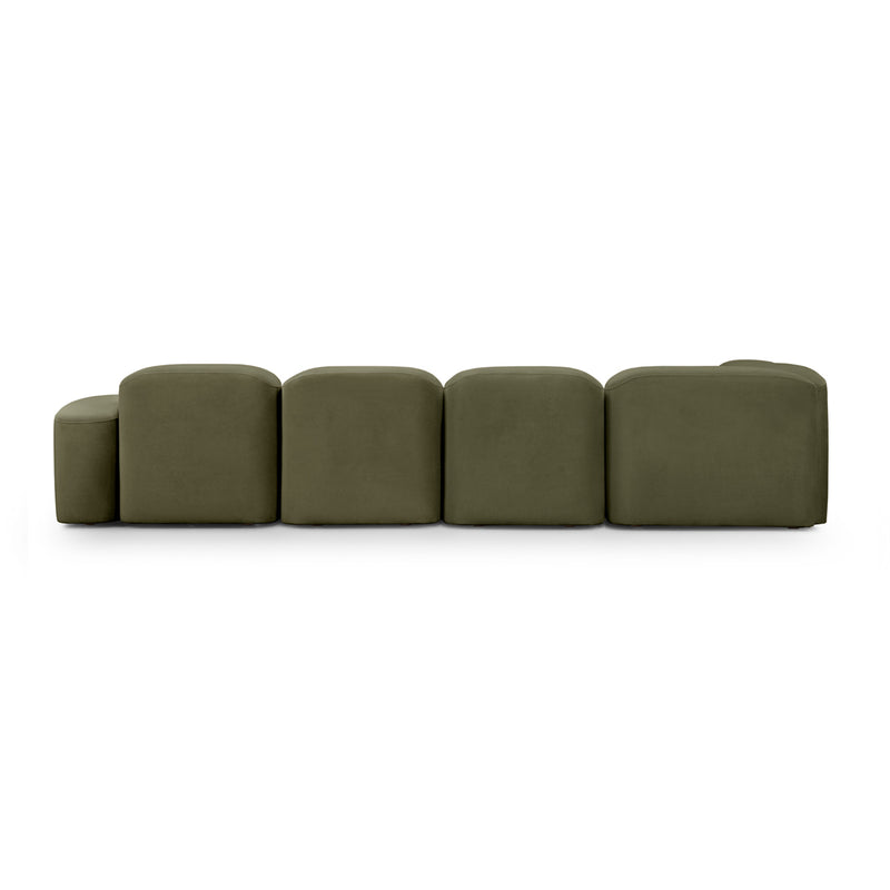 Designed by Sarah Ellison for ELLISON STUDIOS., chaise modular piece, seat & cushions are made with high-resiliency foams, available in various colourways & finishes.