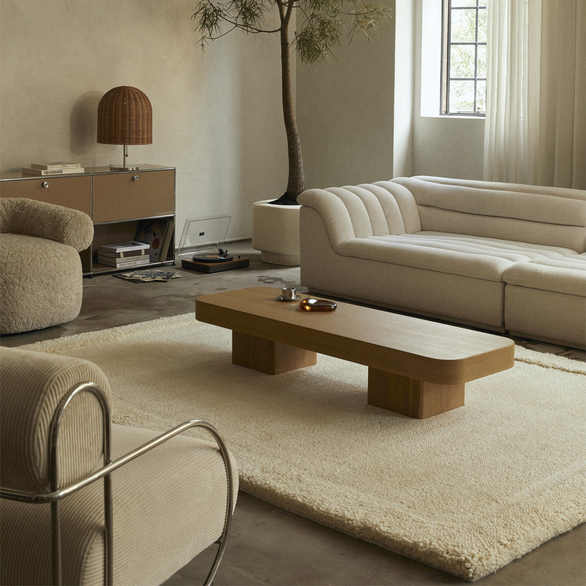 Designed by Sarah Ellison for ELLISON STUDIOS., available in 2 sizes, hand-knotted, 4.5cm border pile height, underlay is recommended, GoodWeave & Woolmark Certified.