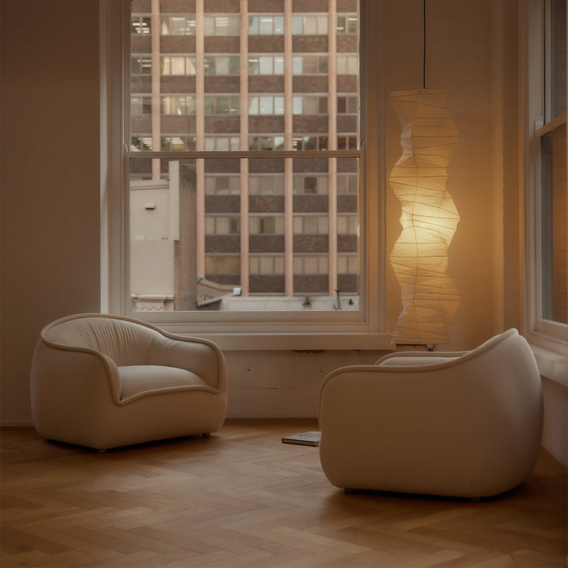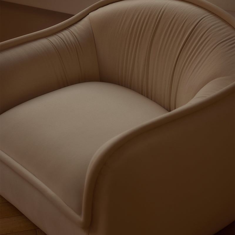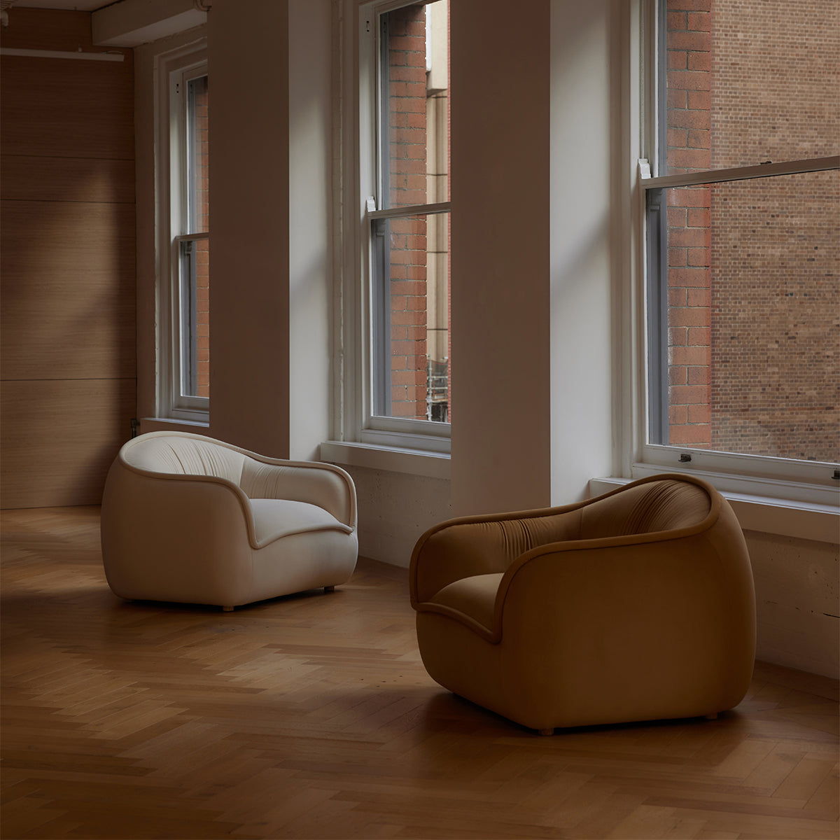 Designed by Sarah Ellison for ELLISON STUDIOS., tubular piped details, deep seat, available in various finishes.