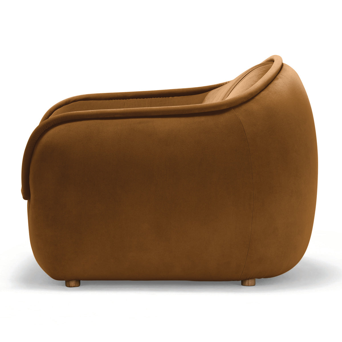 Designed by Sarah Ellison for ELLISON STUDIOS., tubular piped details, deep seat, available in various finishes.