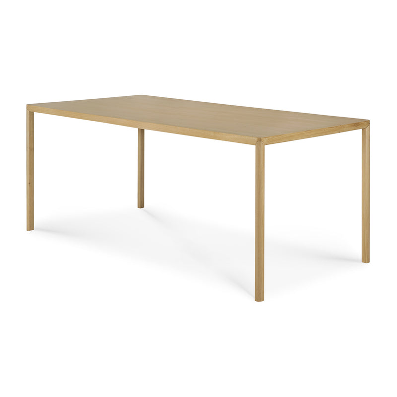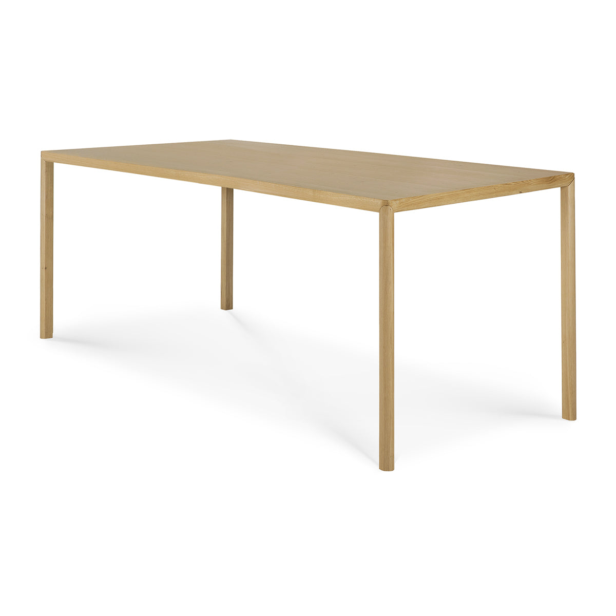 With sleek beveled legs, the tabletop seems to float effortlessly above. The Oak Air is a strong and lean dining table disguised in a simple, clean, and minimal design. Inspired by the lightness experienced with the bed of the same name.