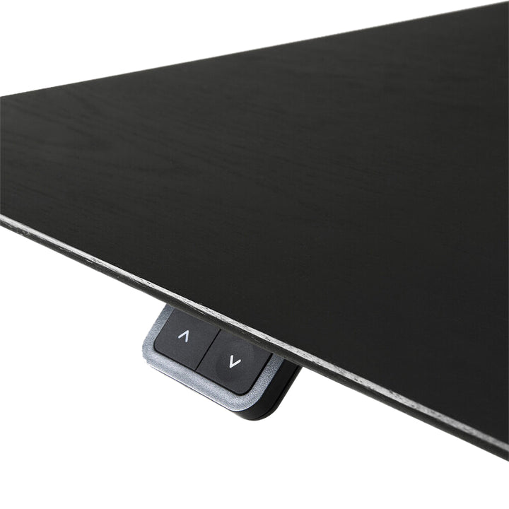 Includes a motorised system to adjust the desk height, from 64 to 130cm (25''- 51'') high. For EU power outlets. Features integrated cable management possibility on desktop. Power Circles and Metal cable trays are to be ordered separately. Made from black-tainted solid oak with a varnish finish. Metal frame from Swedstyle©. Table tops and leg bases can be ordered separately or together as a complete product.