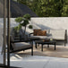 Frame made from 100% solid, black tainted and brushed, teak with a varnish finish. Cushions, 100% polyprop fabric / Quick-dry-foam.