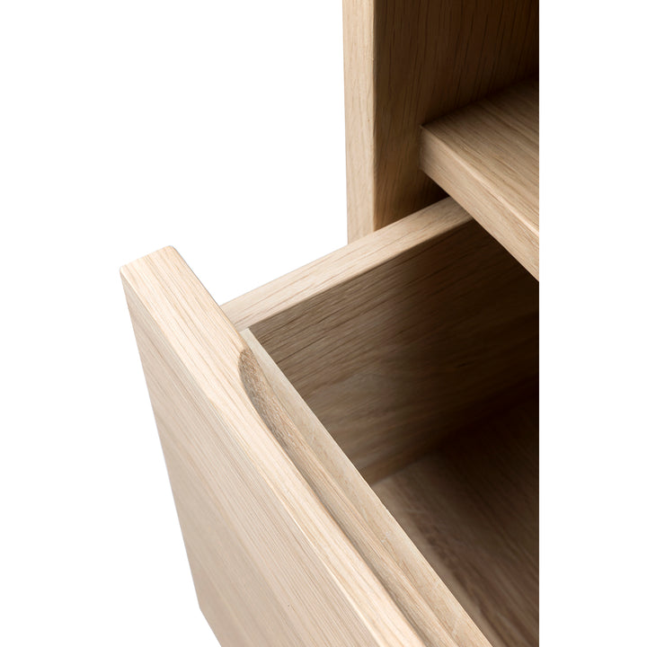 Oiled oak furniture: Oiled oak furniture is finished with a pigmented hardwax oil. This finish gives the furniture its desired natural colour and has the advantage that stains do not penetrate the wood as easily. This is no foolproof guarantee against stains. In case of a spill, remove it immediately. Regular Care: For regular dusting, use a dry cloth. For cleaning or in case of a spill, use a damp cloth and natural soap. Wipe in the direction of the grain. Do not use soap containing detergent or other chemicals. Dry with a soft, clean cloth to prevent spotting. We always recommend protecting surfaces with coasters, mousepads, or placemats, as extreme and repetitive daily use or heat can damage the finish. Always move objects such as flowerpots, vases, etc. from time to time, and ensure any excess water or dampness is wiped dry immediately to prevent marking the surface.