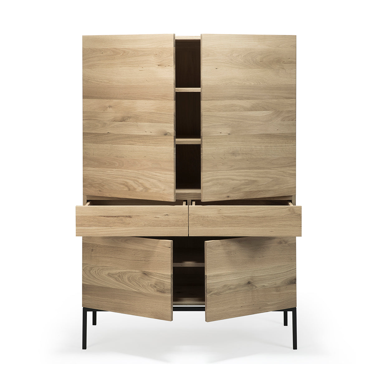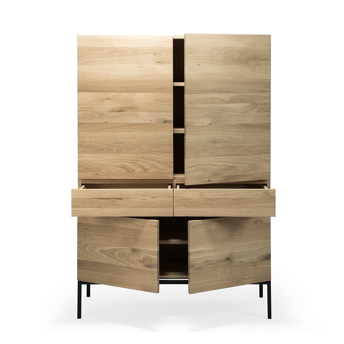 Made from solid oak with a hardwax oil finish and black metal legs. -