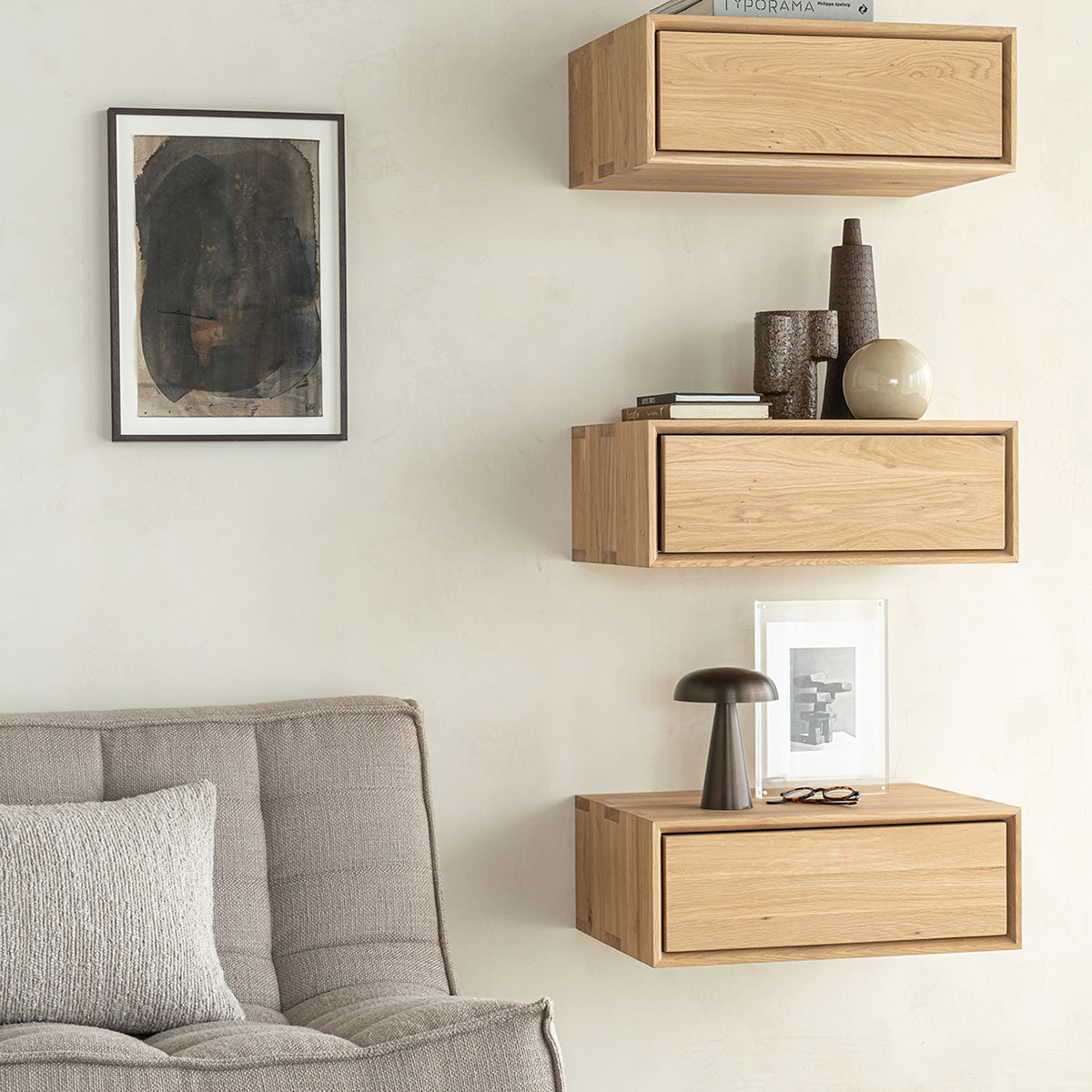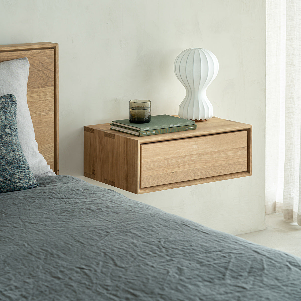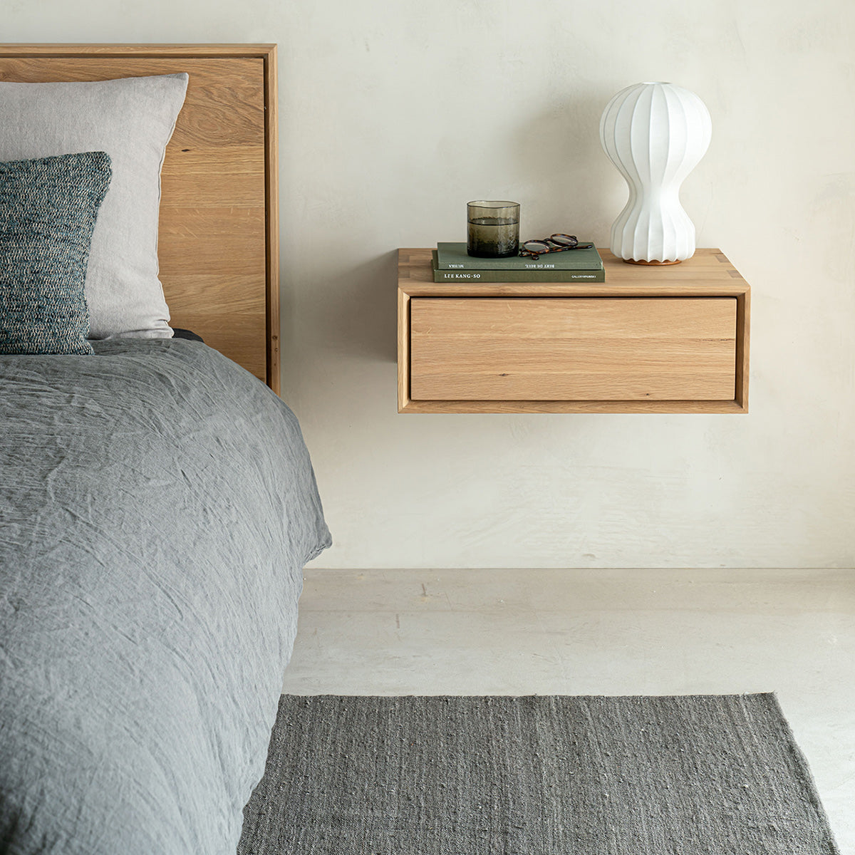 Inspired by our Nordic range, the Nordic bedside table combines elegant lines with the purity of solid wood in a small, elegant form. This hanging version must be fixed to the wall.