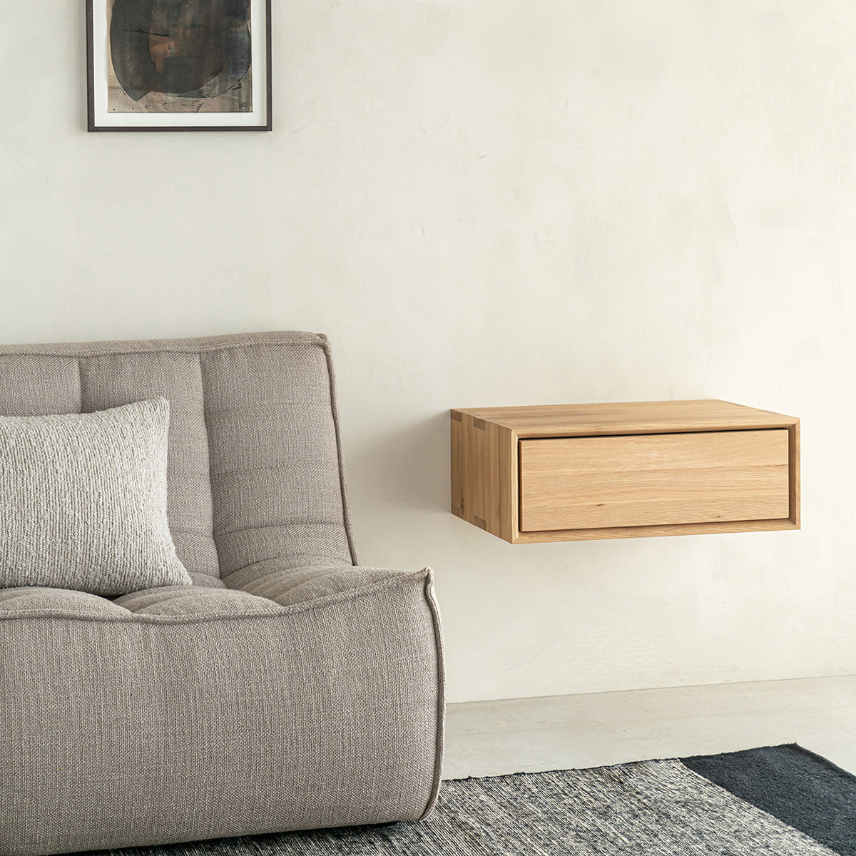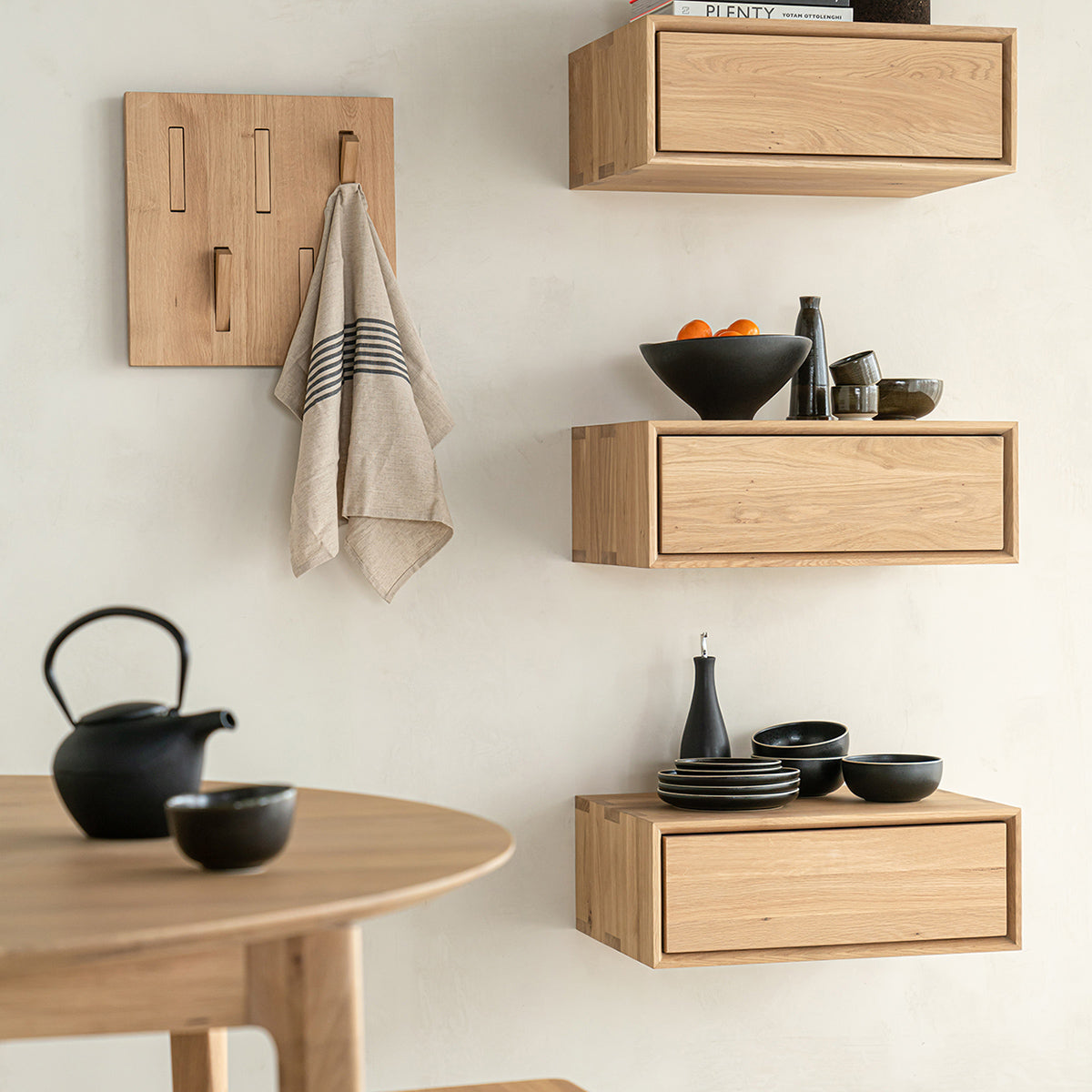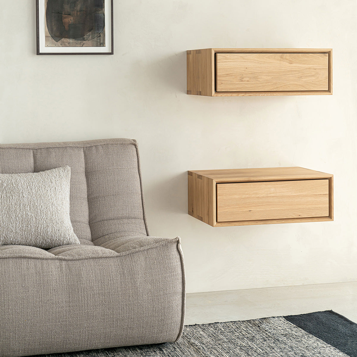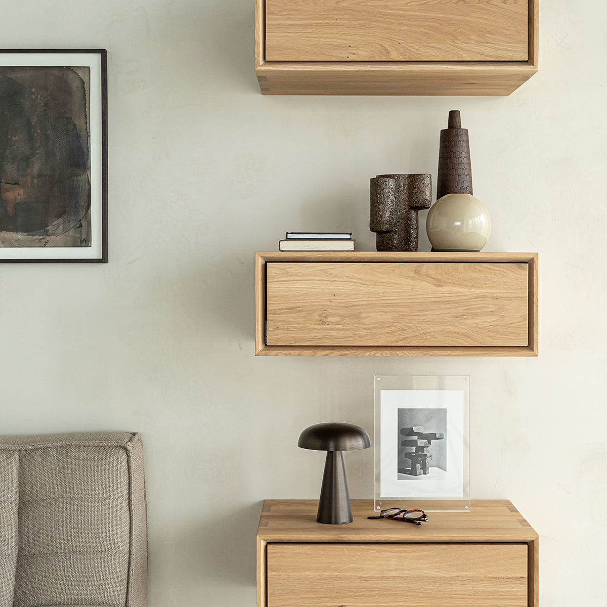 Inspired by our Nordic range, the Nordic bedside table combines elegant lines with the purity of solid wood in a small, elegant form. This hanging version must be fixed to the wall.