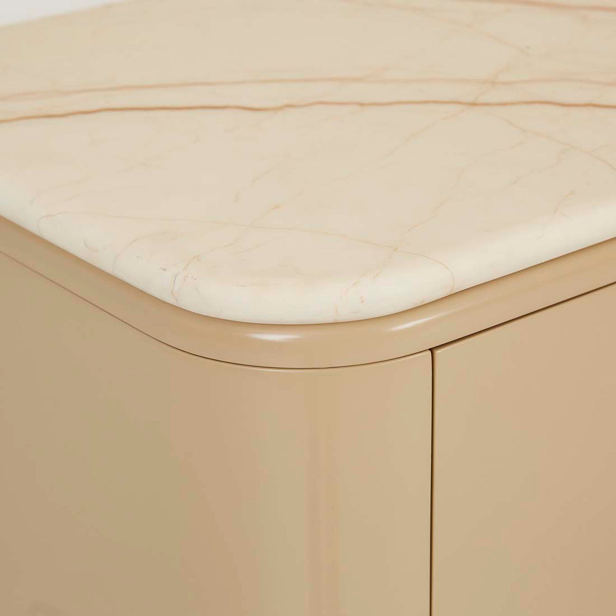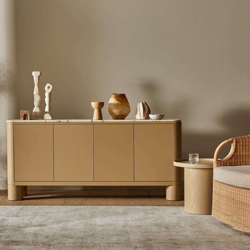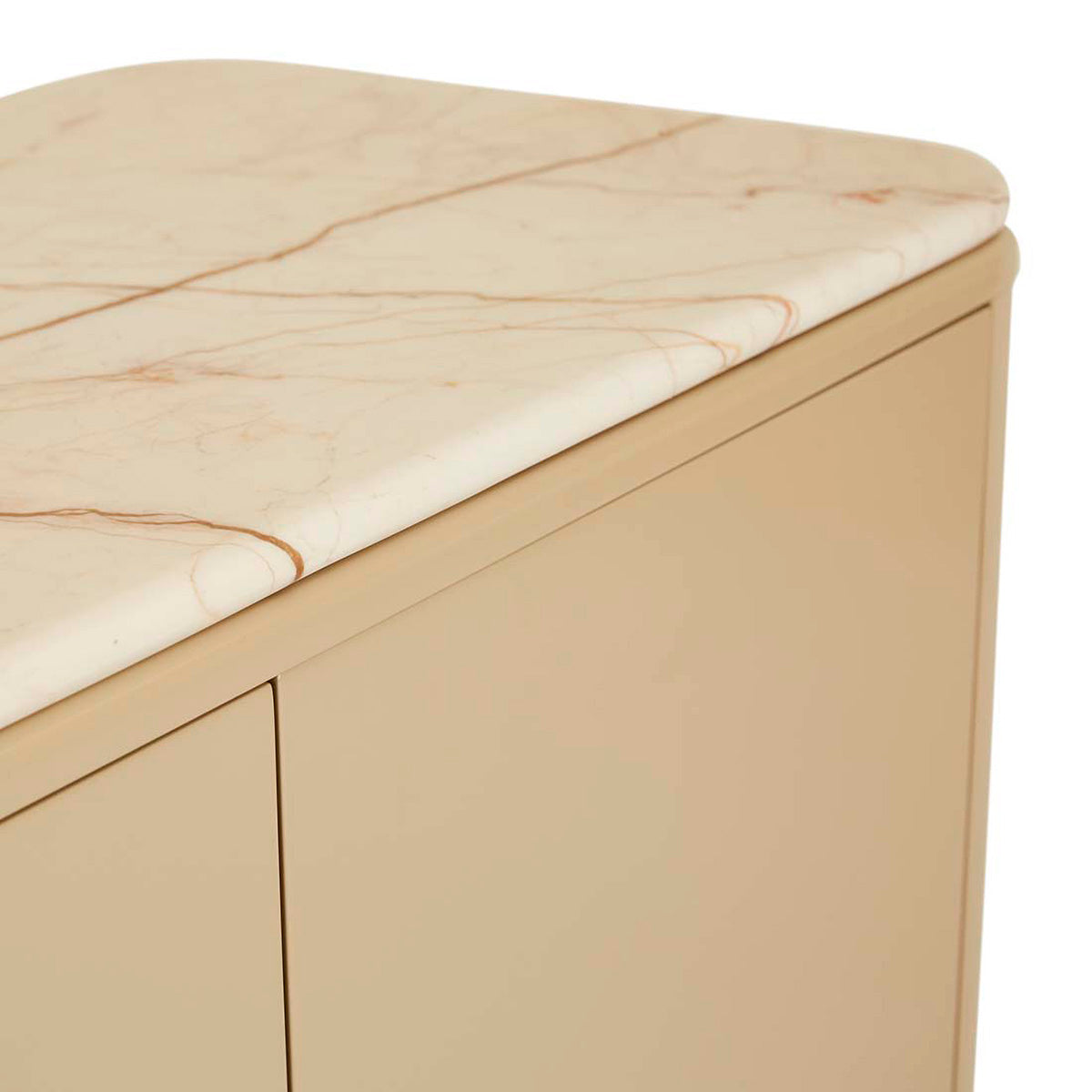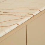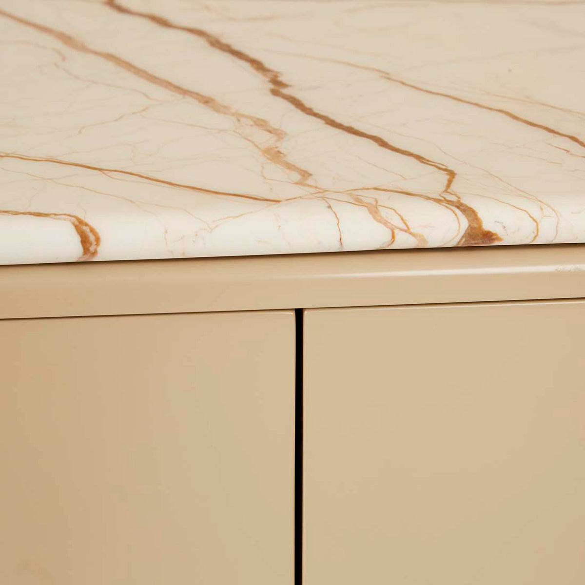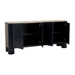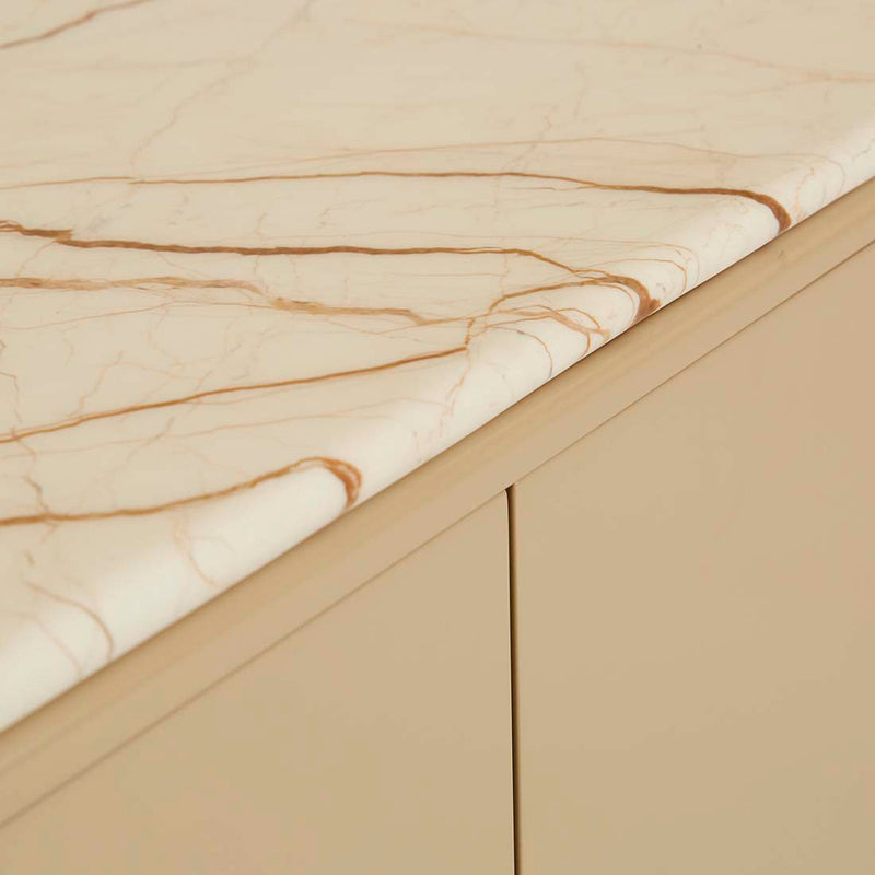 Add a touch of sophistication to your dining space with the Frankie Marble Buffet in Matt Ocean Marble and Gloss Navy. Its mixed material design, featuring a marble top and painted base, creates a striking visual appeal. Hettich hardware guarantees functionality, while ample storage space ensures practicality. Ideal for modern interiors, this buffet blends elegance with practical features.