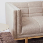 Inspired by mid-century and contemporary design, the Mulholland Sofa features a tailored tuxedo-style frame with distinctive tufting on the seat, arms, and back for a modern, structured look. The solid wood perimeter base, with notched-dowel legs, adds warmth and elegance. With no cushions to adjust, everything stays in place beautifully. Crafted with FSC®-certified wood, it supports responsible forest management. Part of the Mulholland Series, it pairs perfectly with the Mulholland Chair, Lounge, and Bi-Sectional.