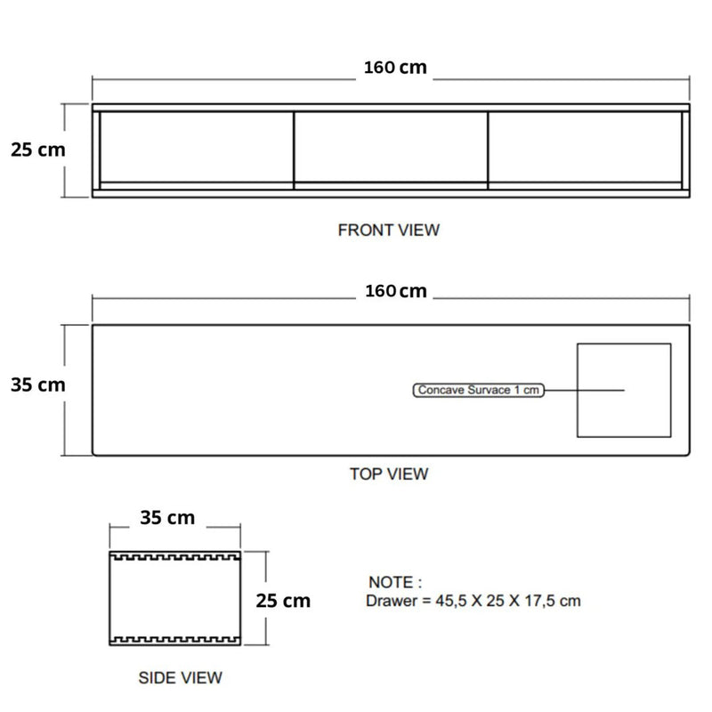 160W x 35D x 25H -