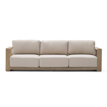 Solid Acacia wood construction, light finish, suitable for indoor & outdoor use, removable cushions, FSC-certified.