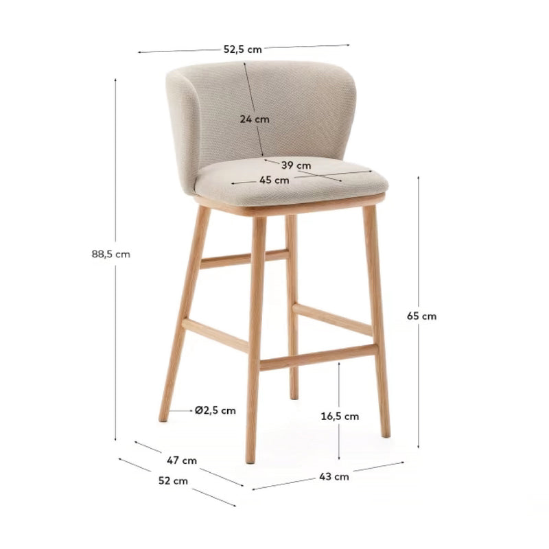 With a design that prioritises comfort and contemporary aesthetics, the Ciselia Fabric Bar Stool Chair adds a touch of style to your kitchen or bar space. Its curved form features a soft chenille upholstery atop a simple leg design, crafted from ash wood with a natural finish.