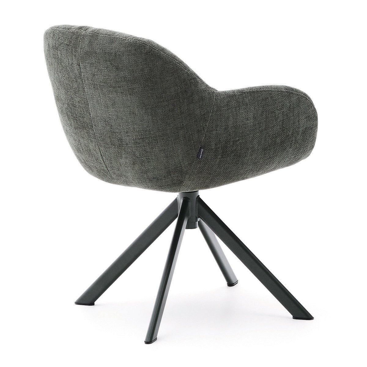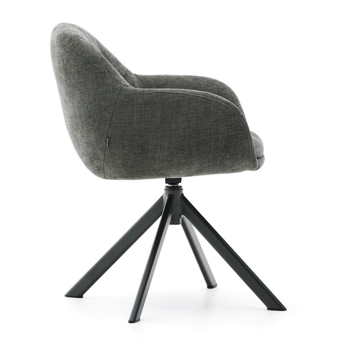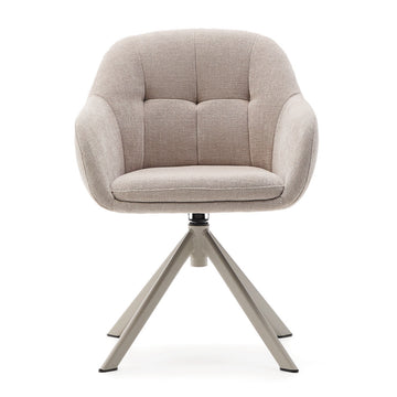 The Dorina Swivel Dining Chair features an enveloping, cushioned design combined with a sturdy, contemporary structure. Ideal to elevate any dining space, its generous proportions and soft chenille upholstery offer premium comfort and a timeless look. The steel legs and swivel ability bring a practical aspect to its overall design, and make this chair a functional and timeless addition to any home.