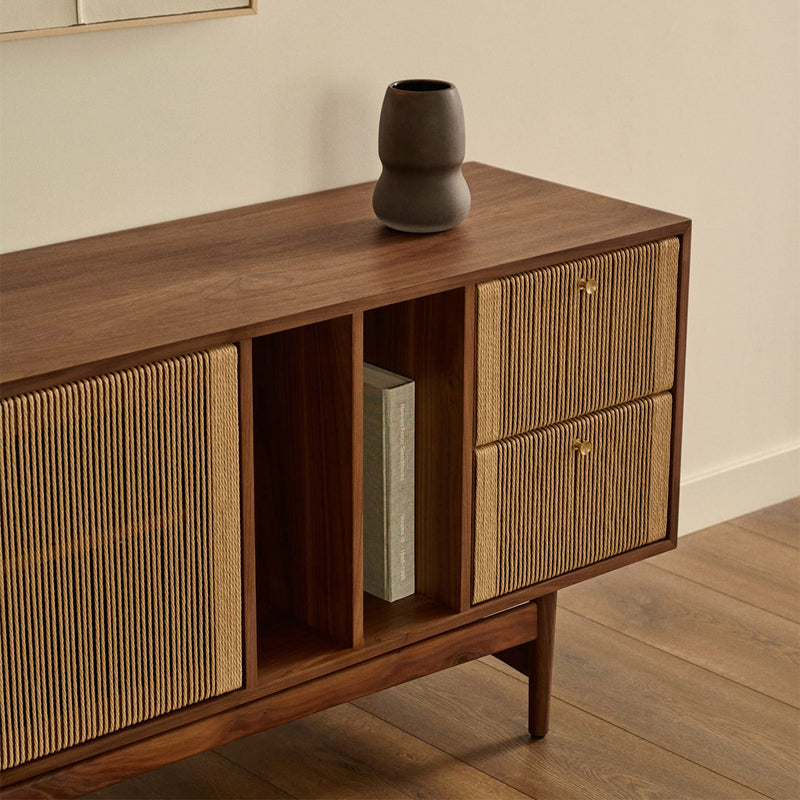 MDF, Walnut veneer, Wood, Brass, Paper Rope
